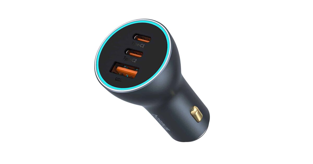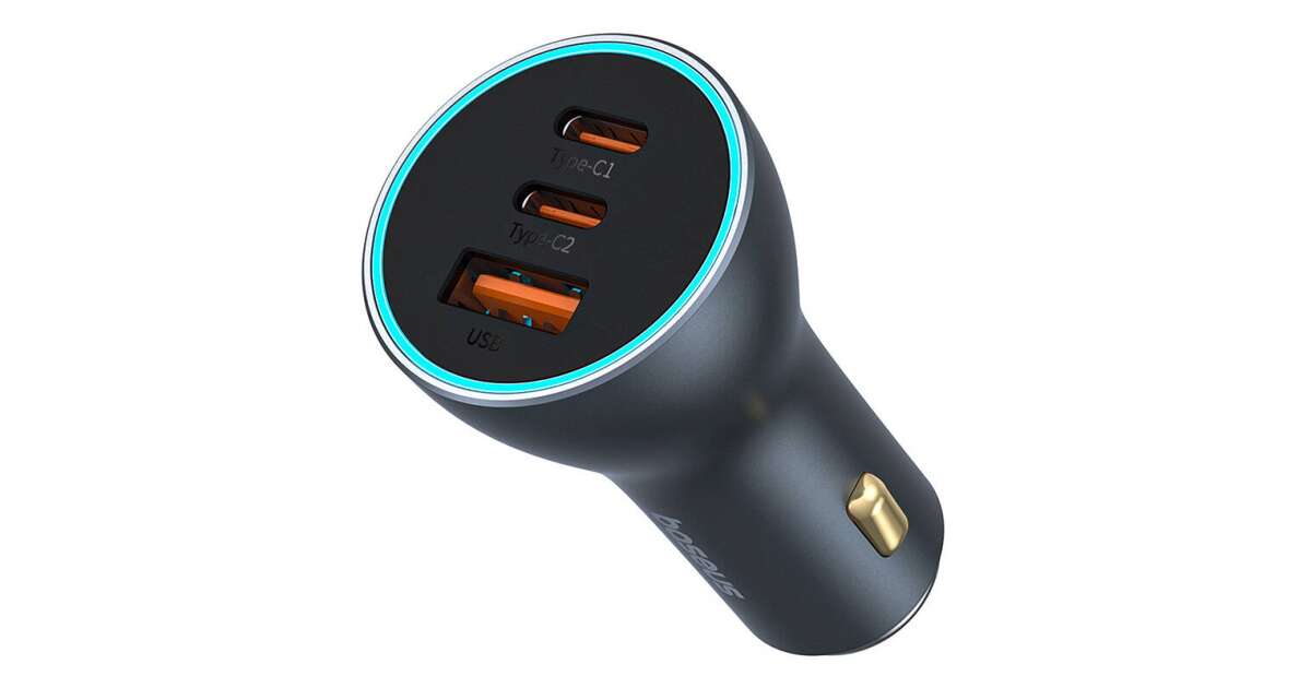 Acest încărcător auto cu o putere de 65W asigură că dispozitivele tale sunt mereu încărcate, chiar și în timpul călătoriilor. Are trei porturi (2x USB-C, 1x USB-A), astfel încât poți încărca mai multe dispozitive simultan.