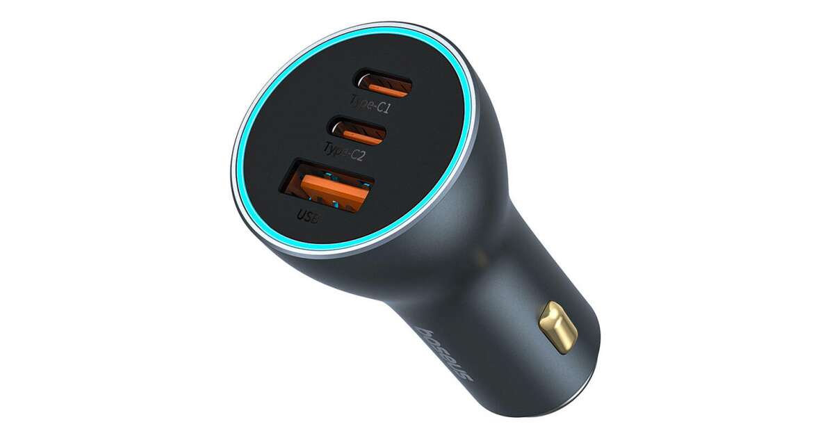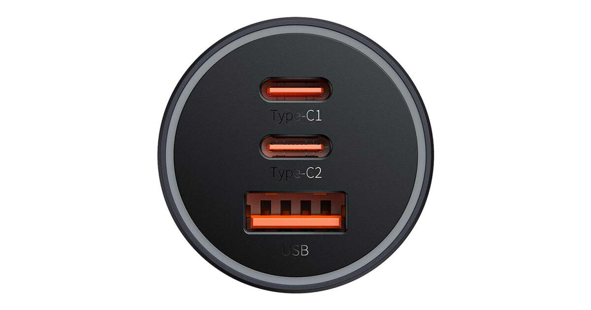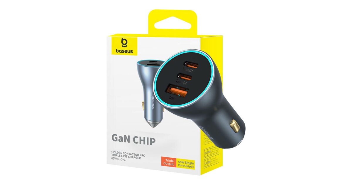 Incarcator auto Baseus Golden Contactor Pro, 65W, 1xUSB, 2xUSB-C, GaN, Gri Descriere