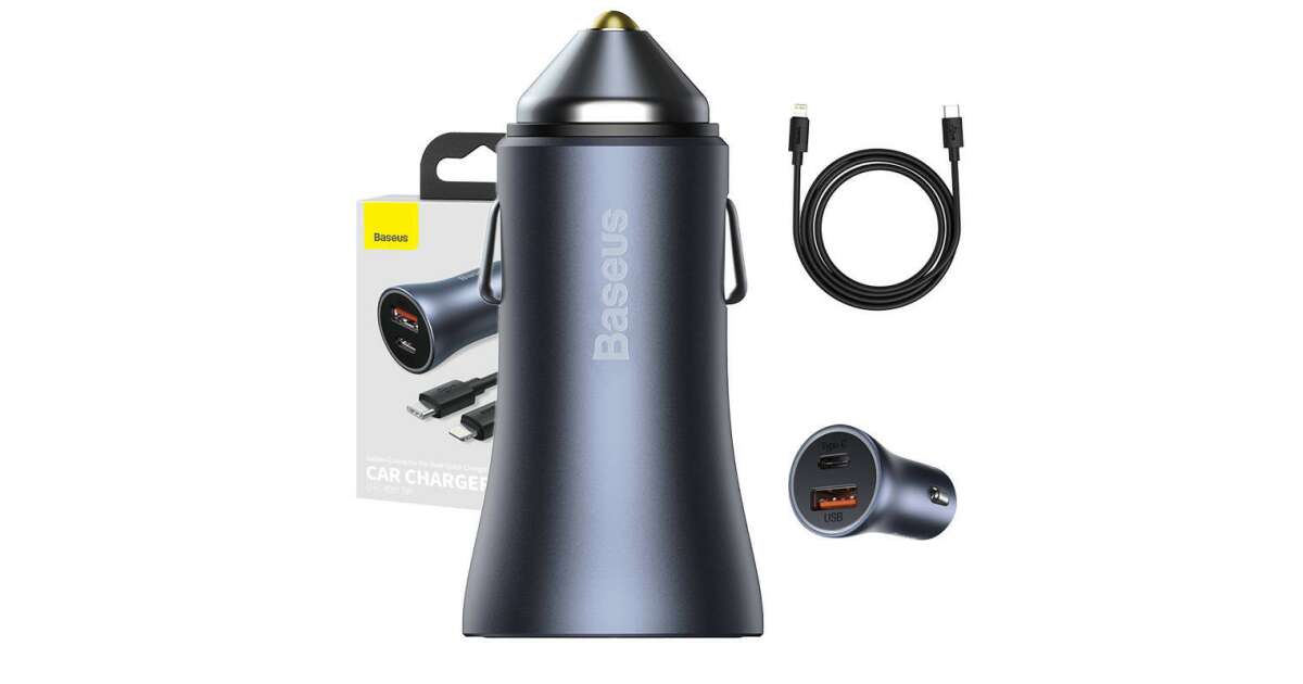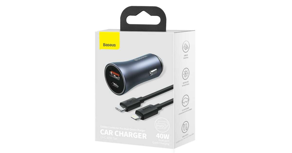 Incarcator auto, Baseus Golden Contactor Pro, IMK-TZCCJD-B0G, 2 porturi, USB si USB-C, Quick Charge 4.0, D, SCP, 40W, Gri inchis, Cablu USB-C-Lightning inclus (TZCCJD-B0G) Descriere