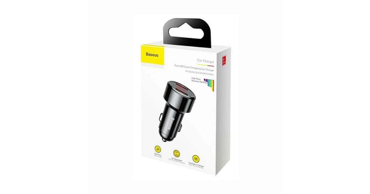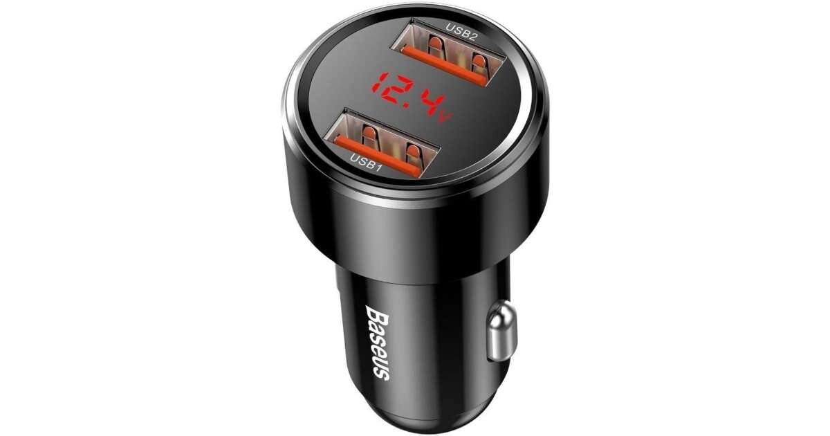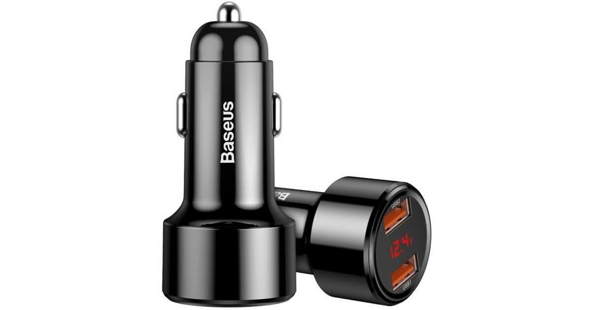 Incarcator auto Baseus USB Magic Series Dual QC, cu afisaj LED, QC3.0, 45W, 6A, 2 X USB, Negru (CCMLC20A-01) Descriere