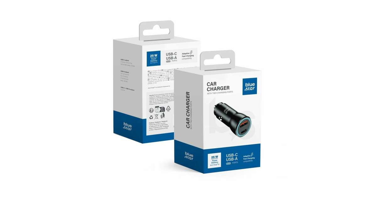 Încărcător auto BLUE STAR 3A 25W Tip C + USB A PD QC3.0 AFC PPS negru Descriere