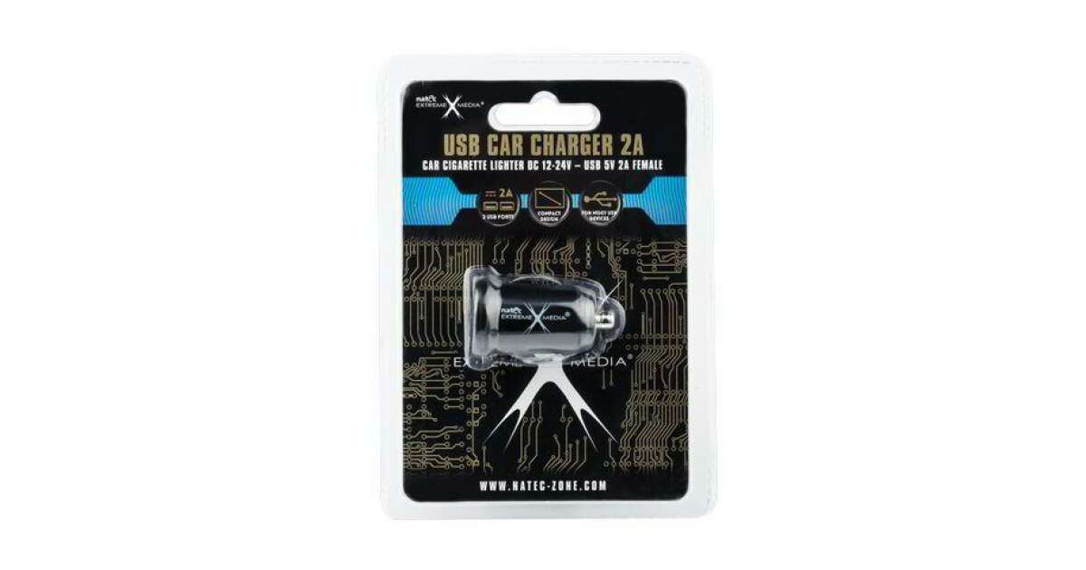 -Incarcator auto, Natec, 12V/24V, 2x USB, 5V/2A, Negru (NUC-0564) (NUC-0564) Descriere