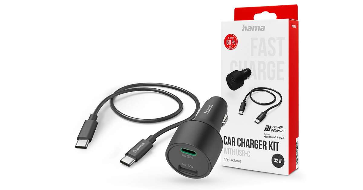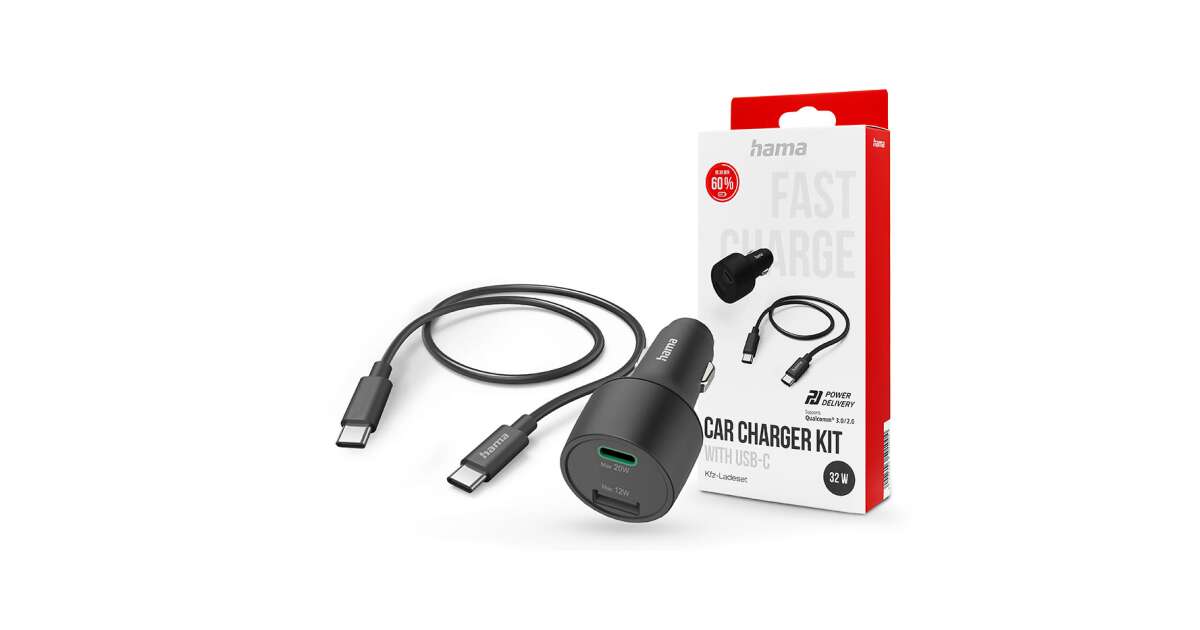 Incarcator auto Hama, 1xUSB-C, 1xUSB-A, PD/QC, 32W, Negru (00201693) Descriere