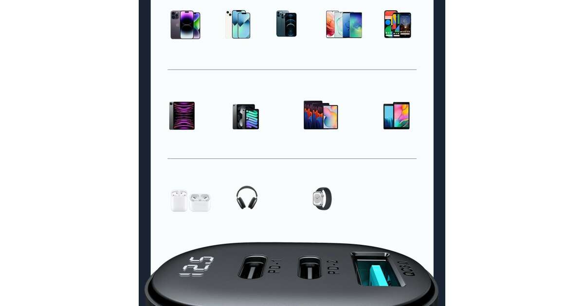 Încărcătorul este compatibil cu numeroase smartphone-uri, tablete și alte dispozitive USB.