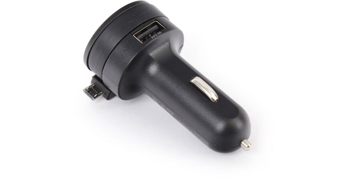 Încărcător auto universal Platinet PLCRRCC cu circuit integrat 2.4A USB + cablu Micro USB rulant Descriere