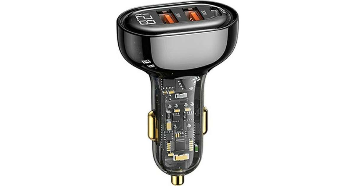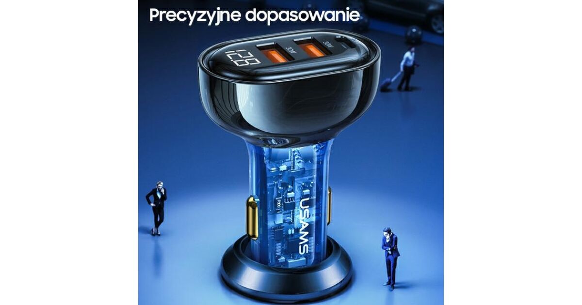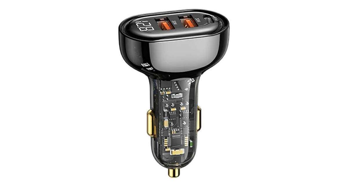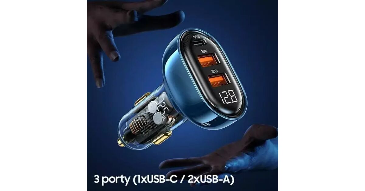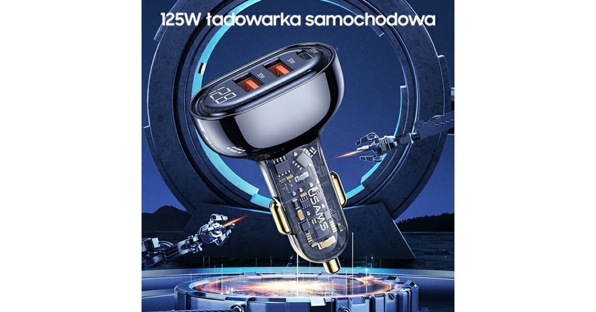 Încărcător auto USAMS 1xUSB-C 2xUSB-A 125W Încărcare rapidă negru transparent CC158CC01 (US-CC158) Descriere
