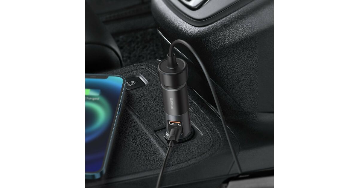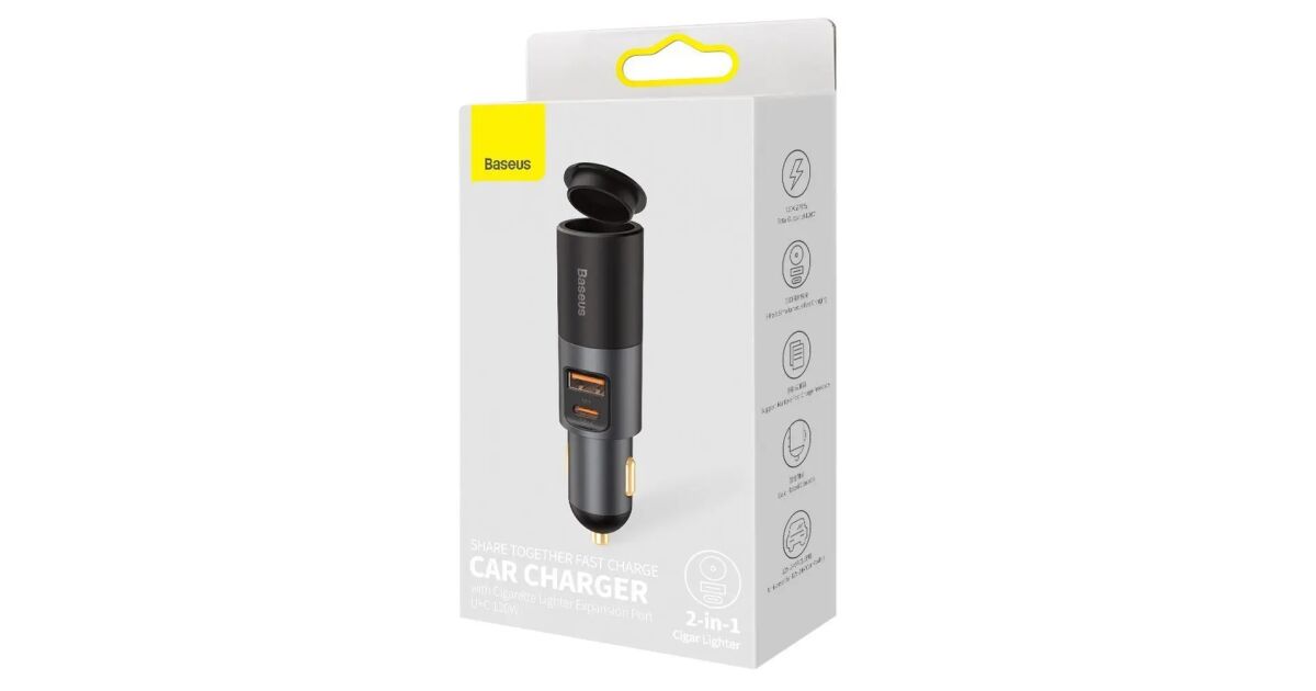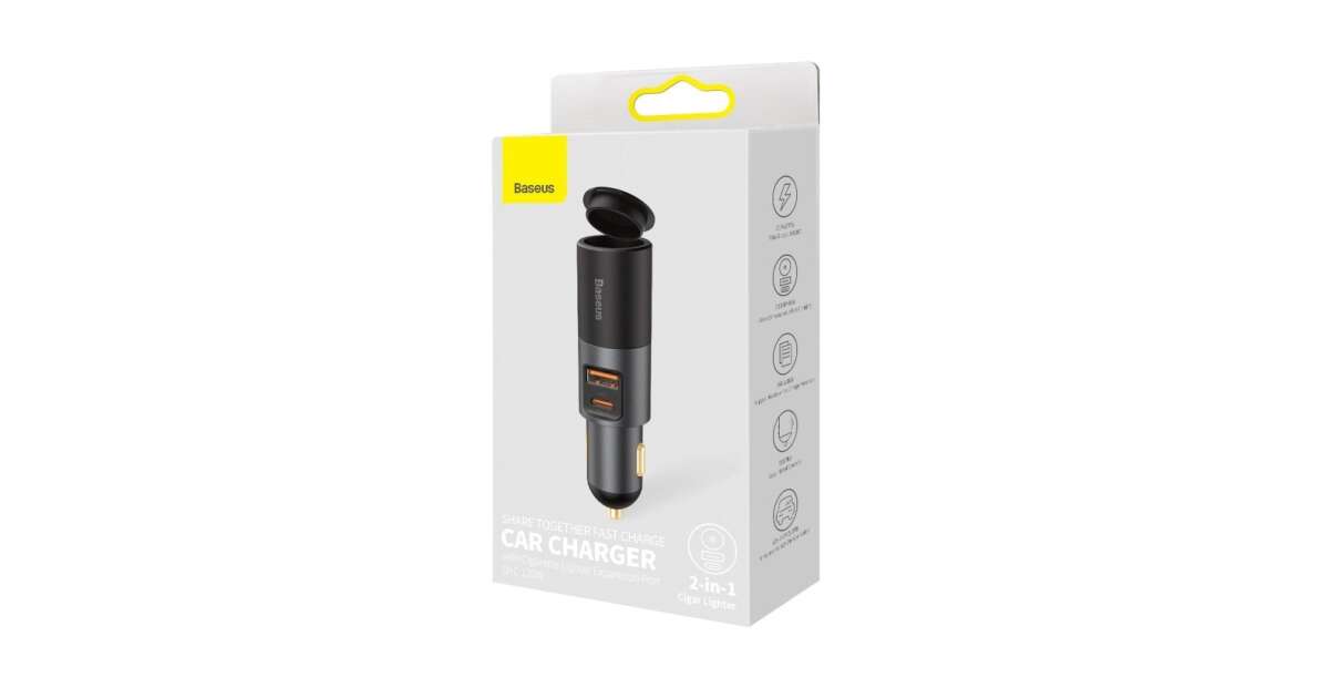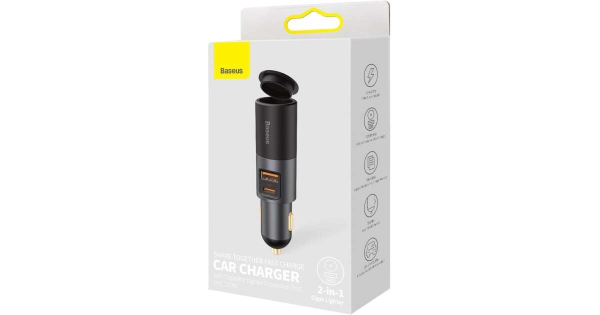 Incarcator auto Baseus Share Together 1xUSB 1xUSB-C cu port de expansiune pentru bricheta 120W Quick Charge Negru Descriere