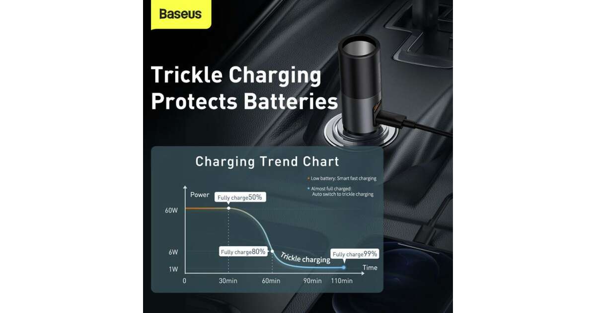Acest încărcător auto Baseus are două porturi USB (USB-A și USB-C) și un port extins de 60W, astfel încât poți încărca mai multe dispozitive simultan. Oferă o putere de până la 120W, asigurând o încărcare rapidă și sigură. Cipul inteligent integrat protejează dispozitivele de supraîncălzire, scurtcircuit și supratensiune. Capacul de protecție din silicon previne pătrunderea prafului.