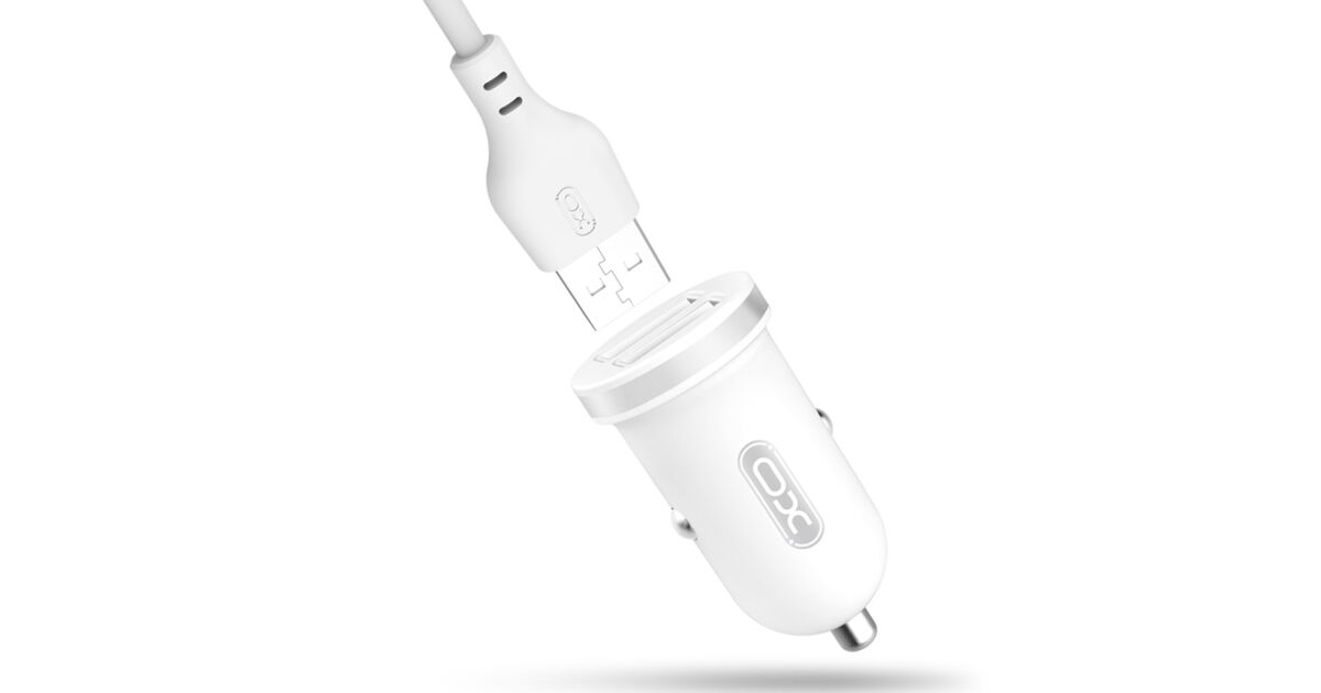 -Incarcator auto XO TZ08 cu cablu iPhone Lightning 2xUSB 2.1A alb Descriere