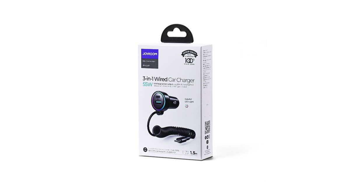 Incarcator rapid pentru masina Joyroom 3 in 1 cu cablu USB tip C 1,5 m 55 W negru (JR-CL07) (JR-CL07) Descriere