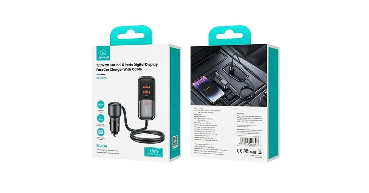 Ordinul USAMS. singur. C40 3xUSB+2xUSB-C 165W PD+QC Încărcare rapidă negru/negru CC213CC01 (US-CC213)