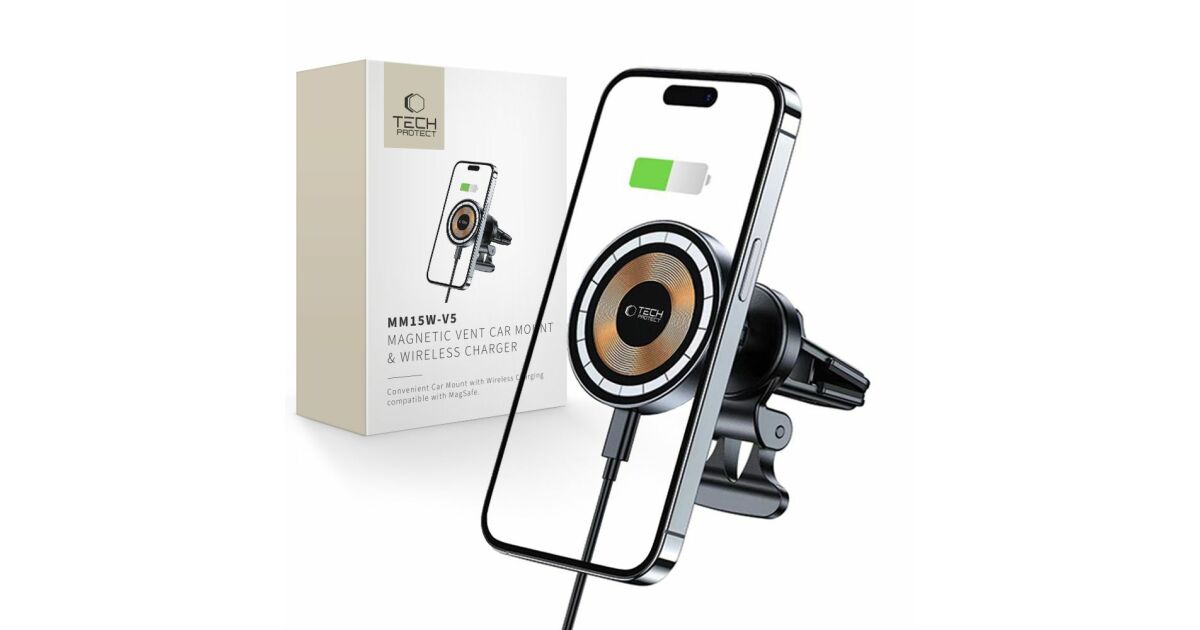 Suport auto Tech-Protect V5 Magnetic, Air Vent Mount, Compatibil MagSafe, Incarcare wireless 15W, Cablu USB-C 1m inclus, Negru Descriere