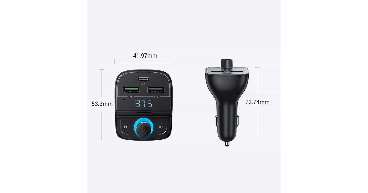 Ascultă-ți melodiile preferate în mașină, în timp ce încarci mai multe dispozitive simultan! Transmițătorul FM și încărcătorul auto UGREEN CD229 are 3 porturi USB, dintre care două oferă încărcare rapidă (20W PD și 18W QC3.0), iar al treilea este pentru redarea muzicii de pe un stick USB.