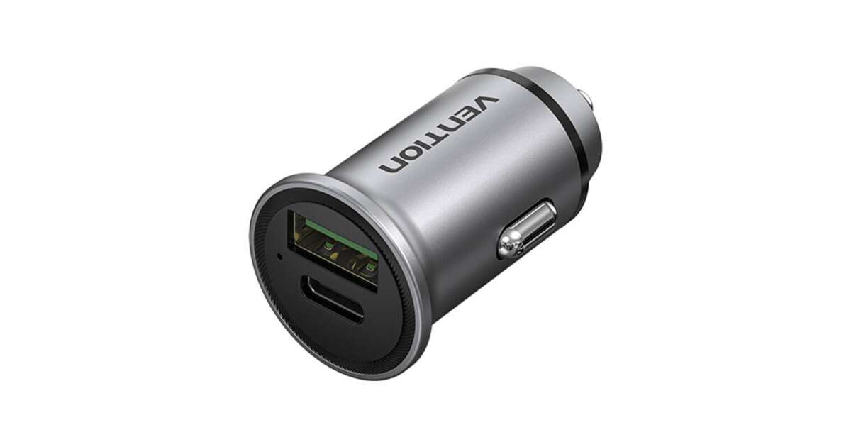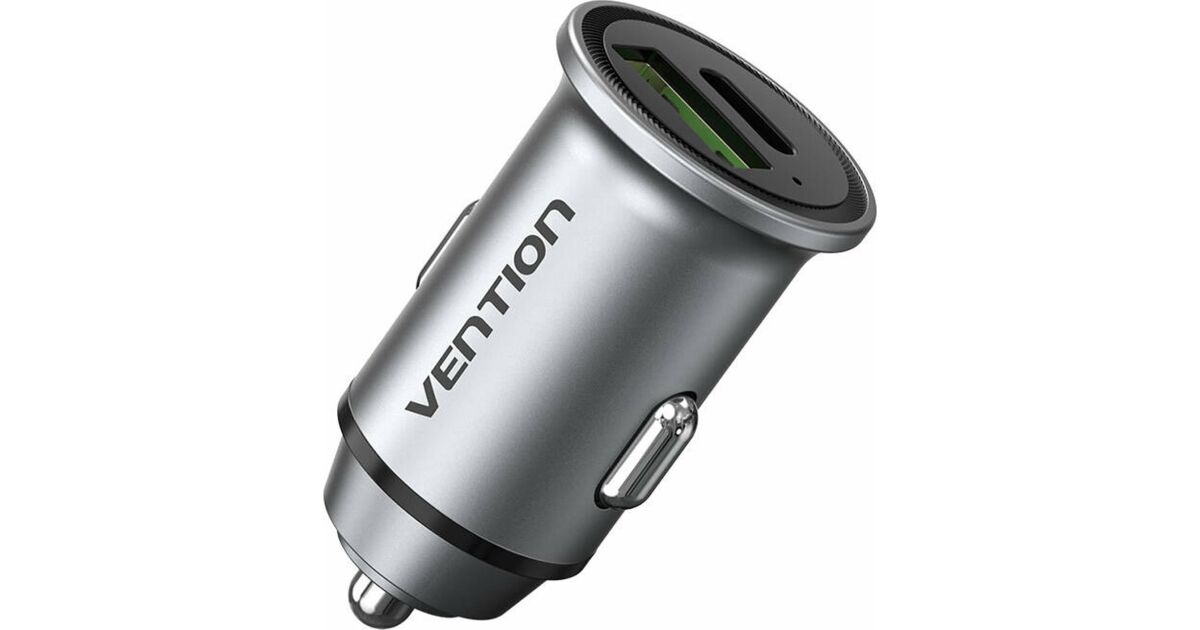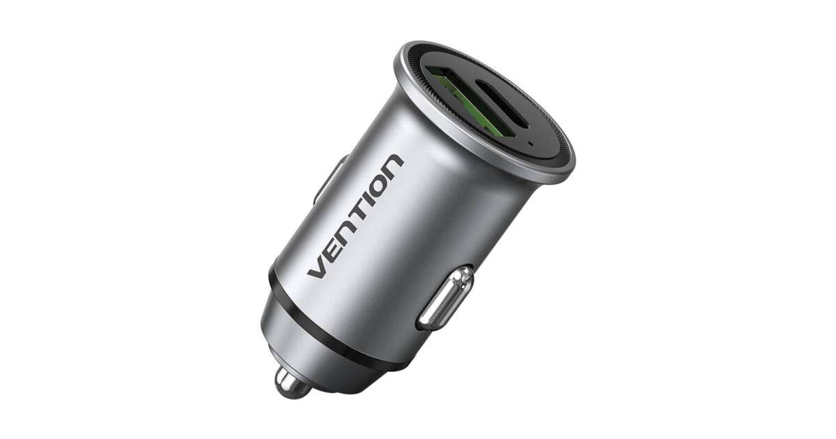 -Incarcator Auto Circular, Vention, 1x USB-A, 1x USB-C, 30W, Gri (FFBH0) Descriere