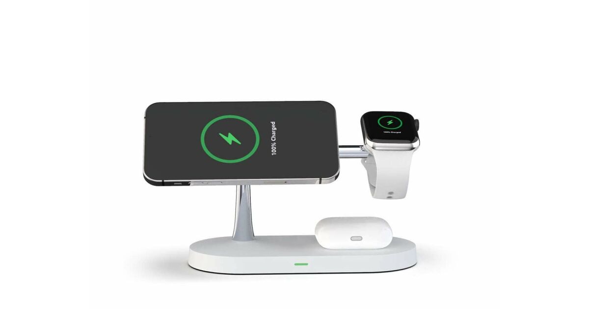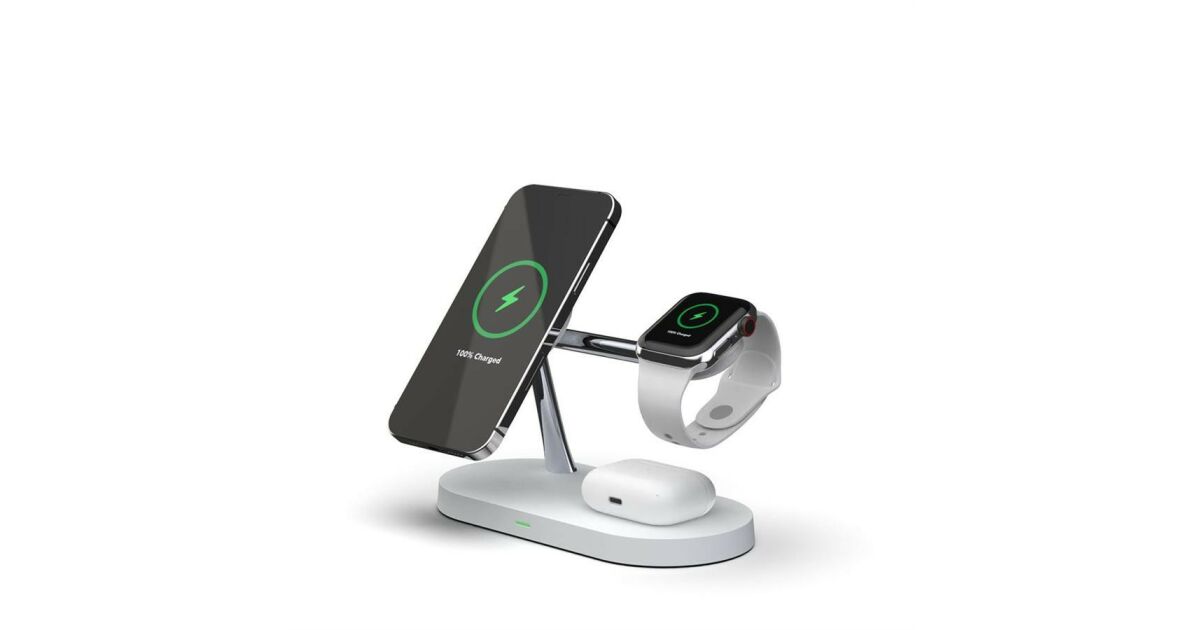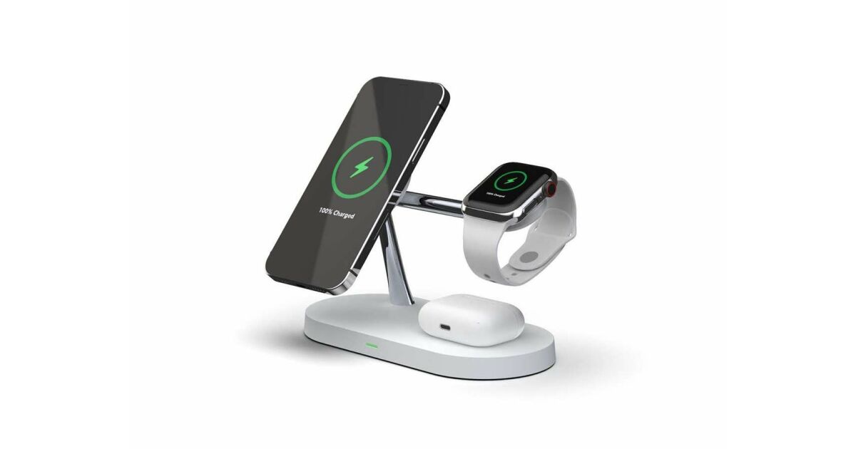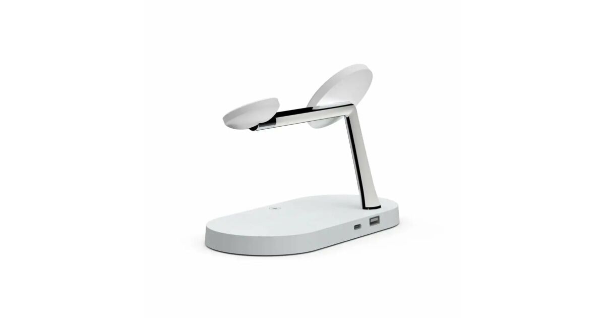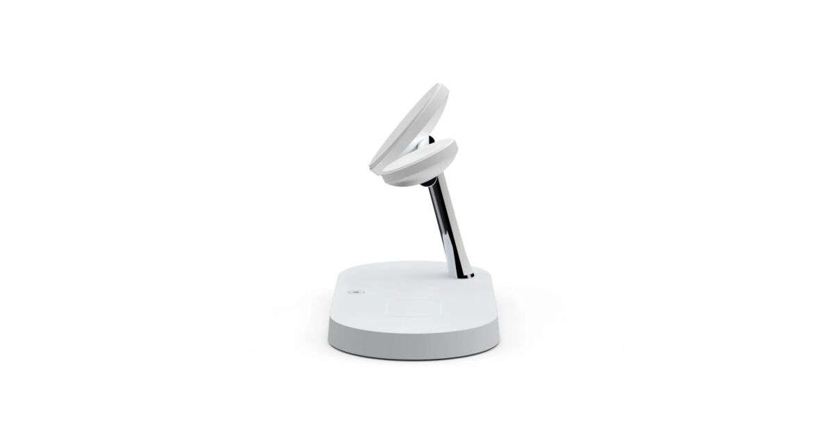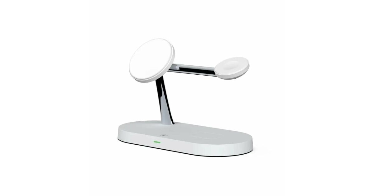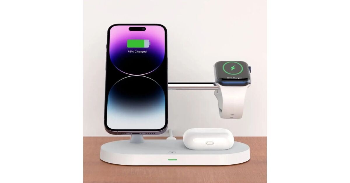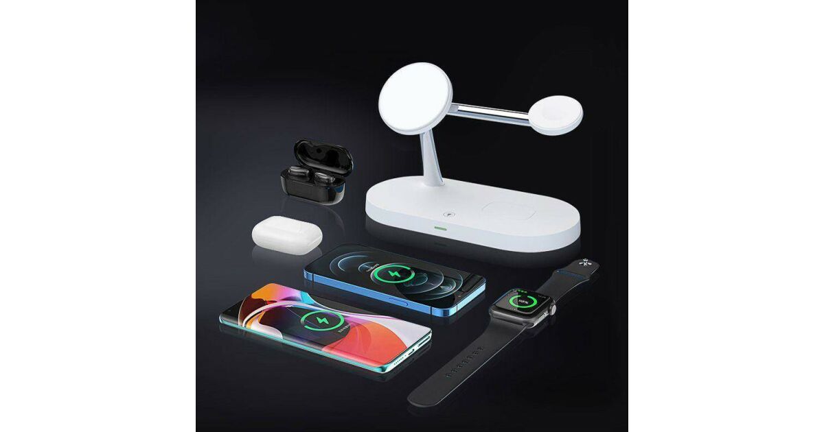 Această stație de încărcare wireless multifuncțională poate încărca simultan trei dispozitive: iPhone (compatibil MagSafe), Apple Watch și AirPods. Designul modern, cu finisaj mat, oferă un aspect elegant, în timp ce designul modular permite o configurare flexibilă a încărcării.