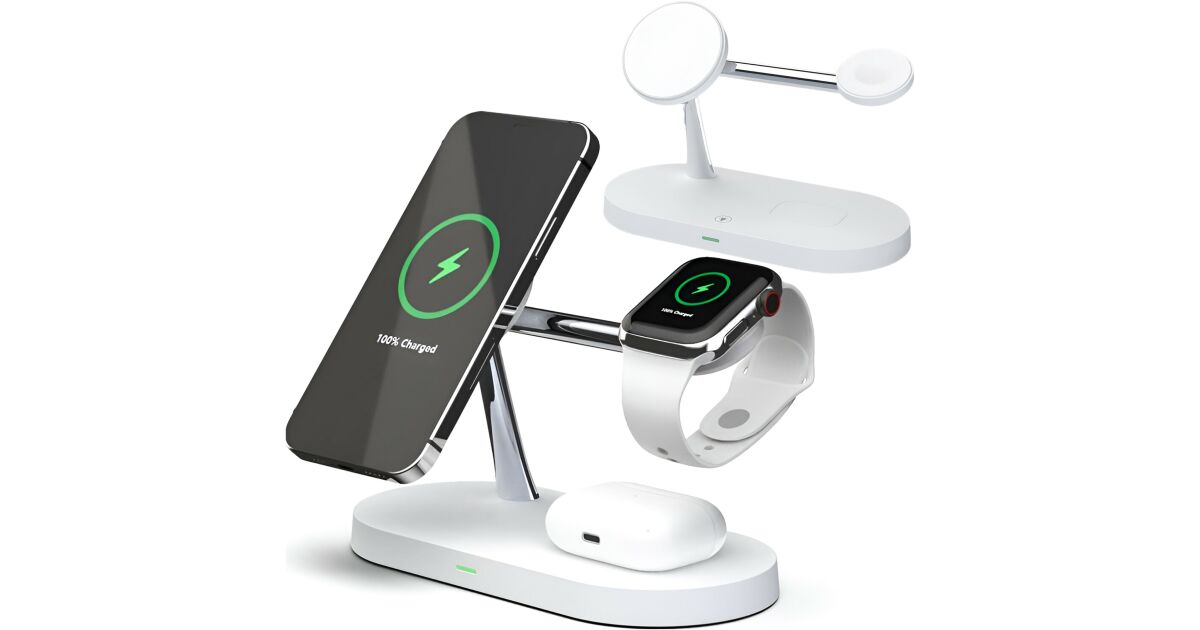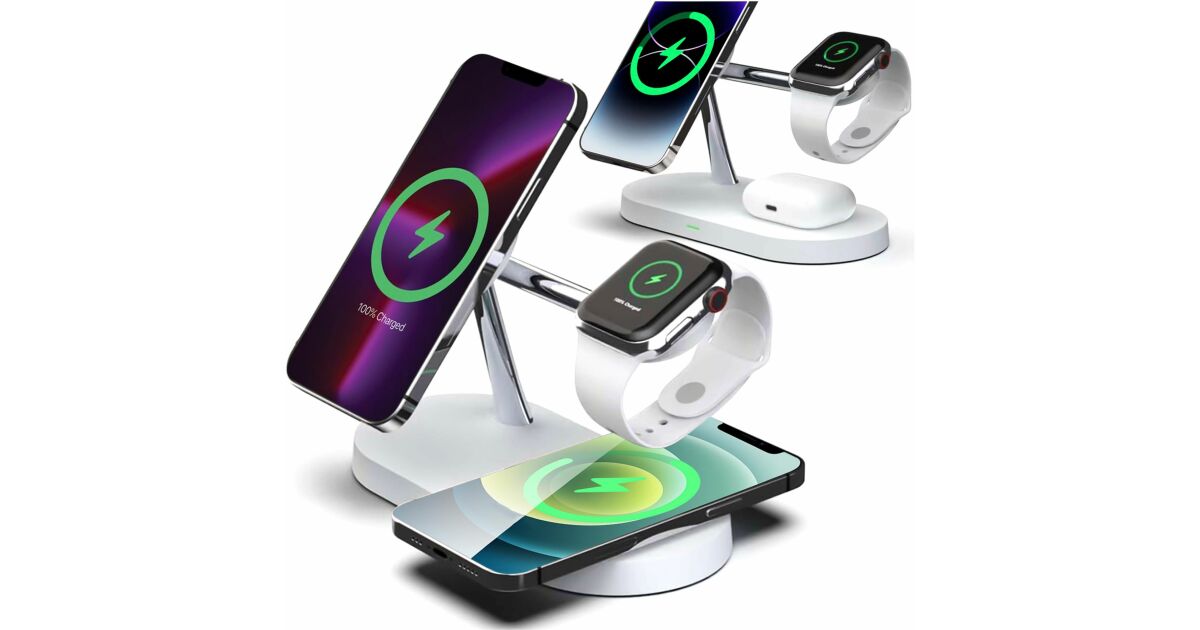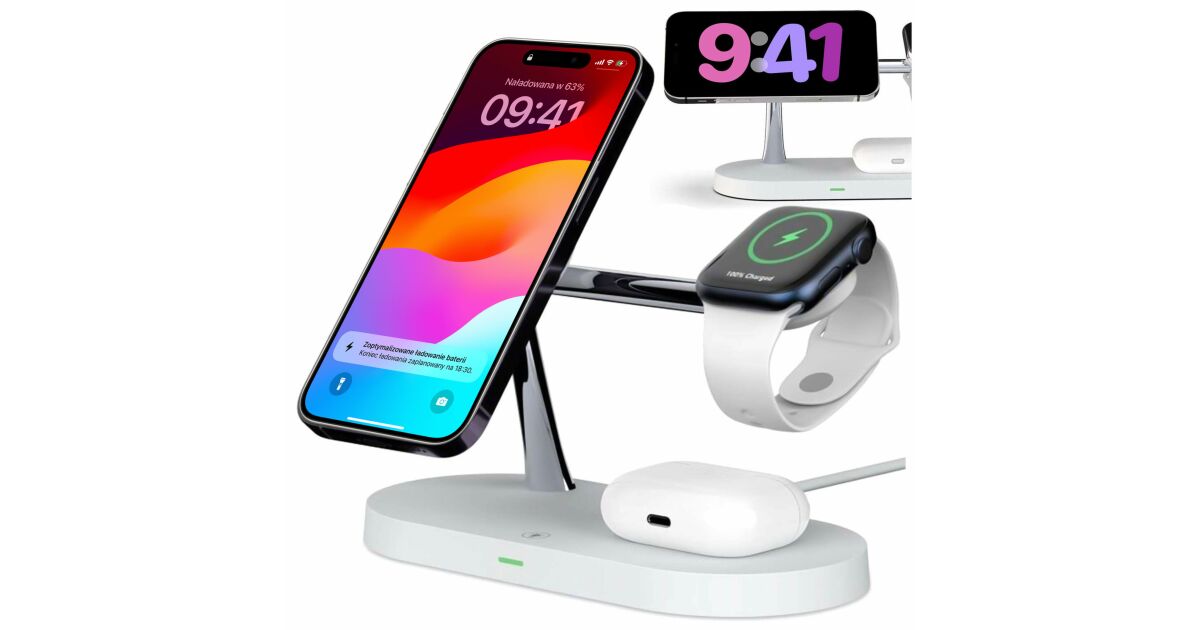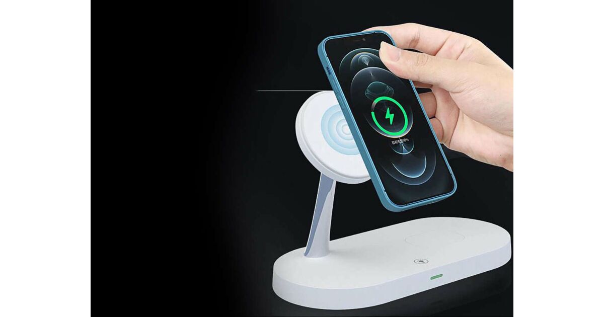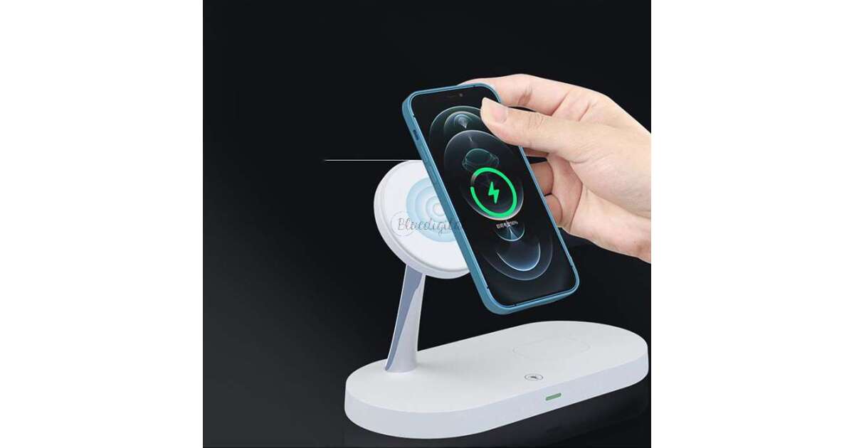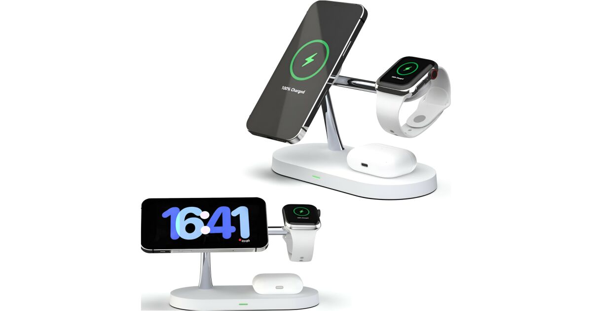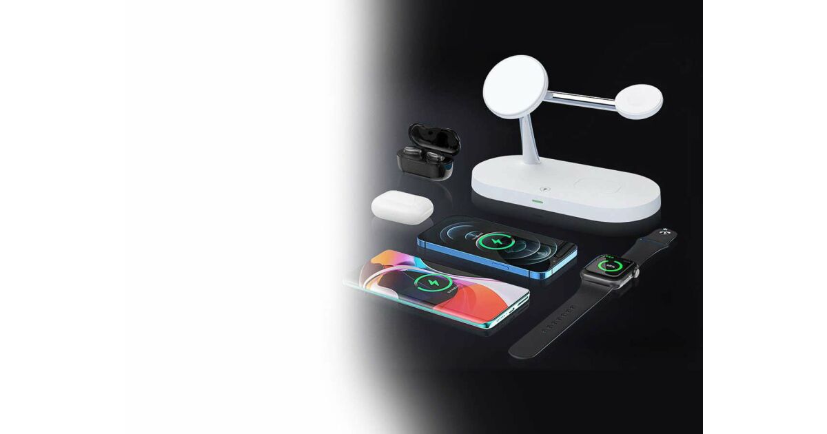 Această stație de încărcare wireless multifuncțională poate încărca simultan trei dispozitive: iPhone (compatibil MagSafe), Apple Watch și AirPods. Designul modern, cu finisaj mat, oferă un aspect elegant, în timp ce designul modular permite o configurare flexibilă a încărcării.