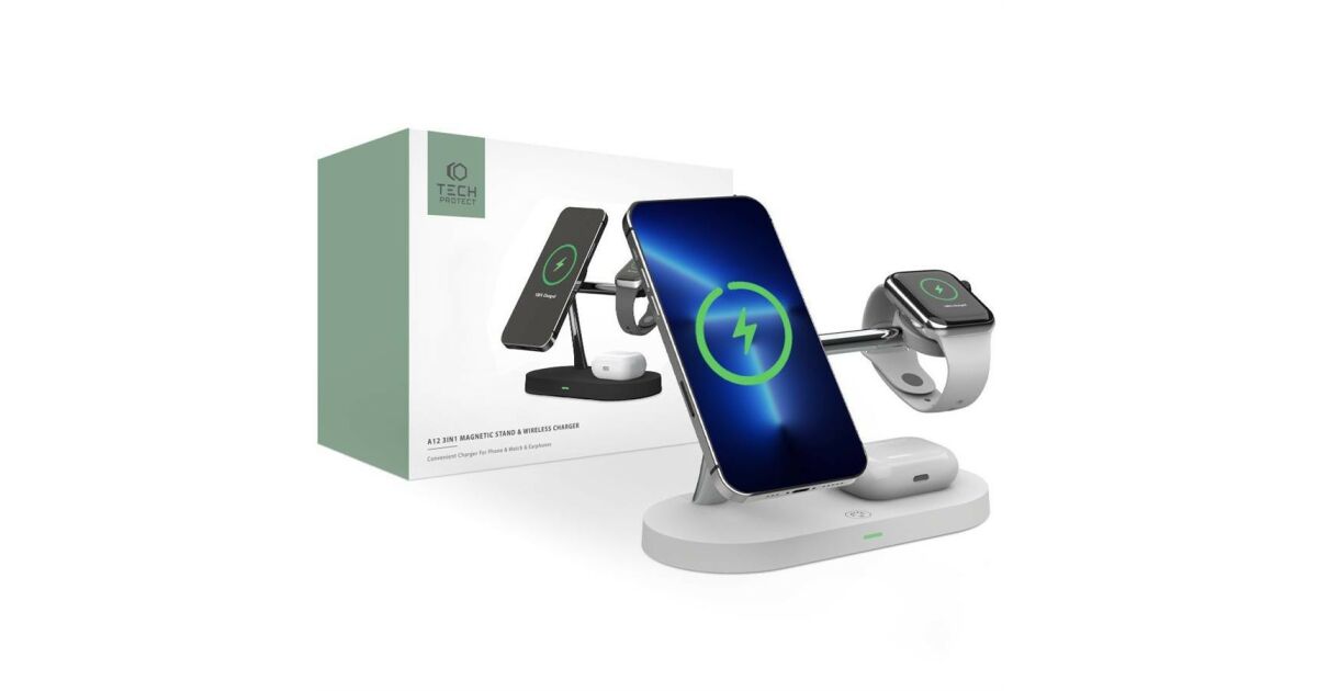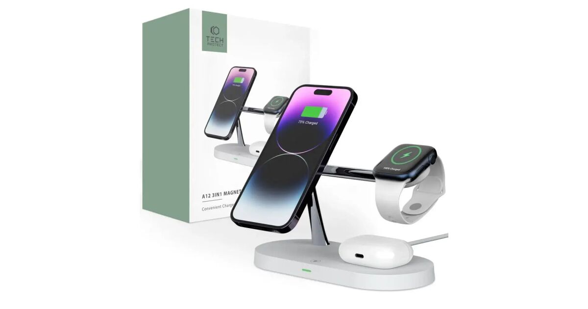 Stație de încărcare wireless 3 în 1 Tech-Protect: Încărcați-vă telefonul, ceasul inteligent și căștile simultan! 📱⌚🎧
