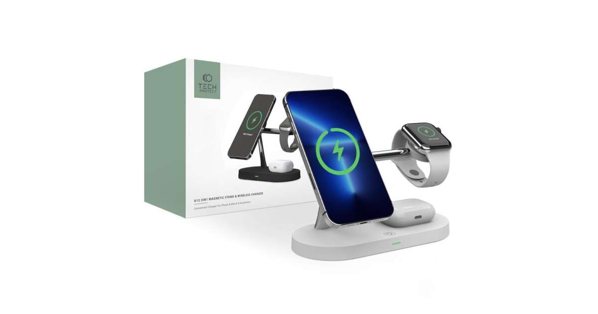 Incarcator Wireless Universal Tech-Protect A12 3in1 MagSafe Alb Descriere