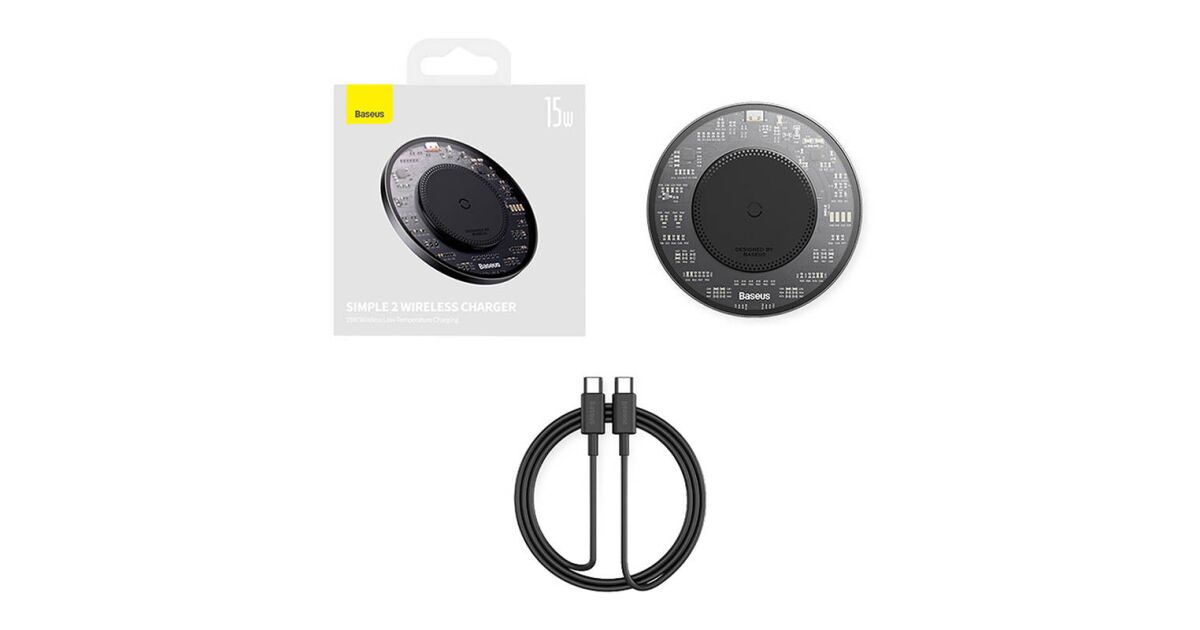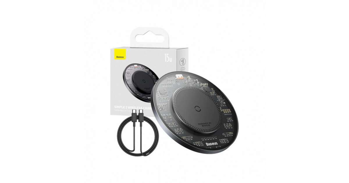 Incarcator inductiv fara fir, Baseus Simple 2, 15 W, Cablu USB-C la USB-C, Negru (CCJJ050001) Descriere
