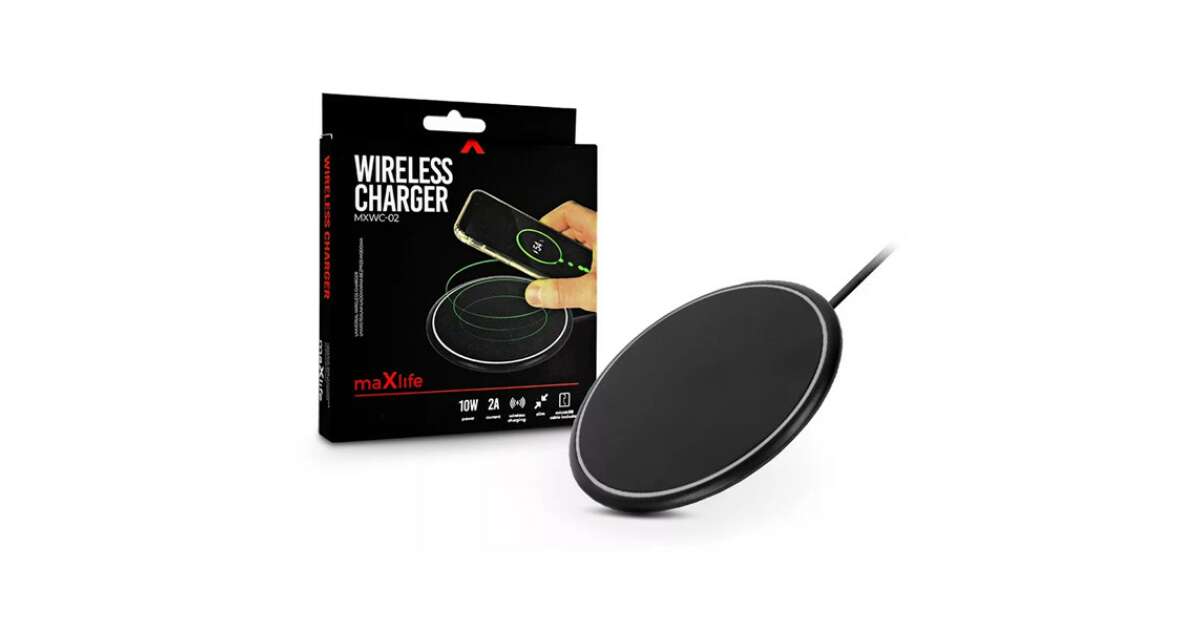 Maxlife Qi univerzális vezeték nélküli töltő állomás - 5V/2A - 10 W - Maxlife MXWC-02 Wireless Charger - Qi szabványos - fekete (TF-0117)