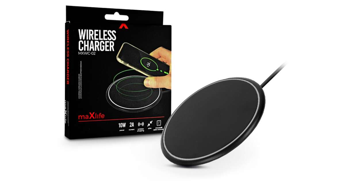Maxlife Qi univerzális vezeték nélküli töltő állomás - 5V/2A - 10 W - Maxlife MXWC-02 Wireless Charger - Qi szabványos - fekete (TF-0117) Descriere