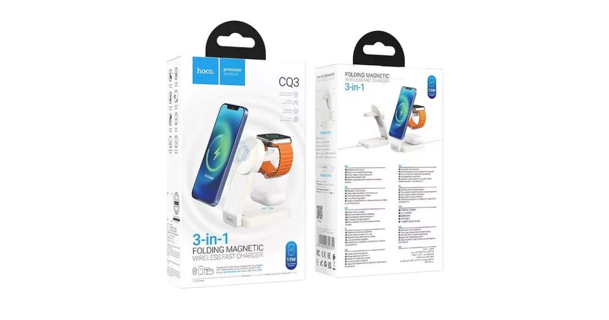 Suport de incarcare desktop Hoco cq3 3 in 1 (15 W, wireless, incarcator rapid, Magsafe, incarcator Apple Watch) alb (CQ3_W) Descriere