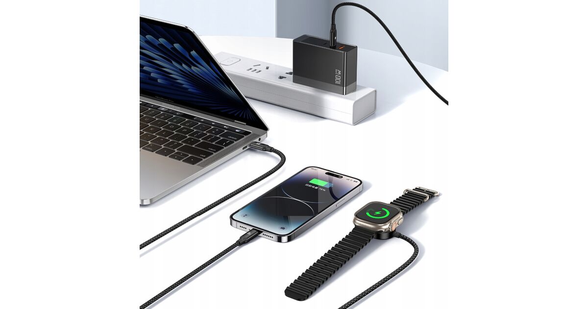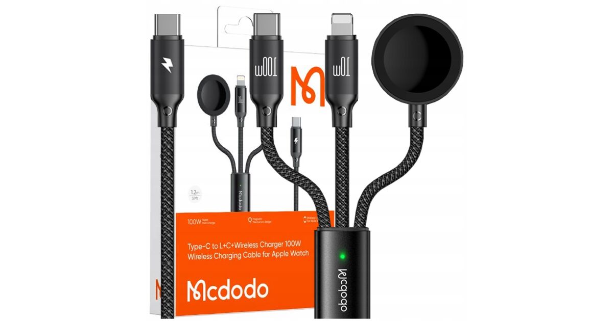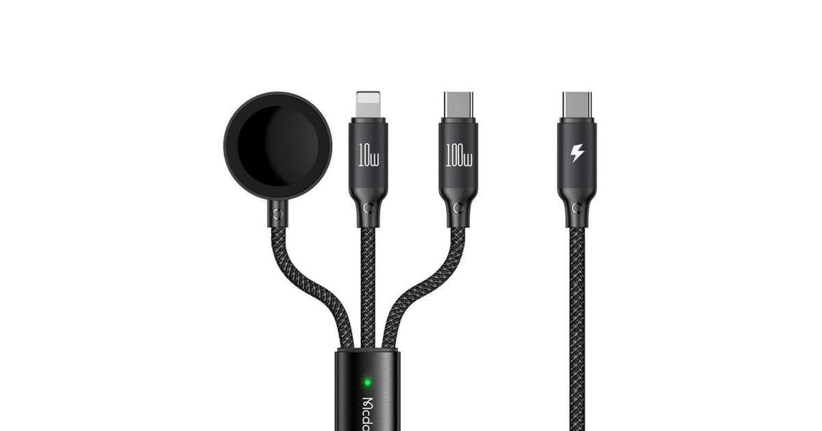 Acest cablu Mcdodo CA-4940 versatil îți încarcă simultan Apple Watch-ul, iPhone-ul și alte dispozitive USB-C. Adio, mizerie de cabluri! 😉