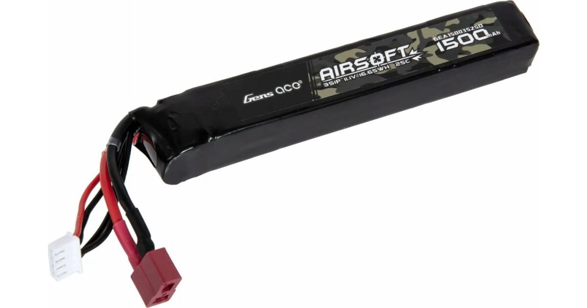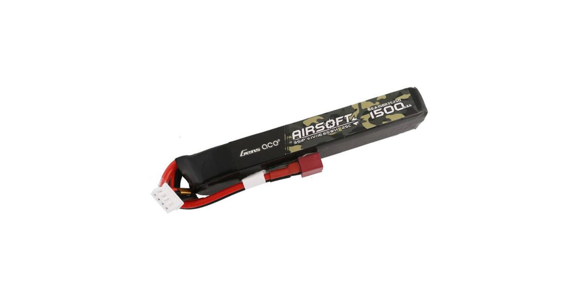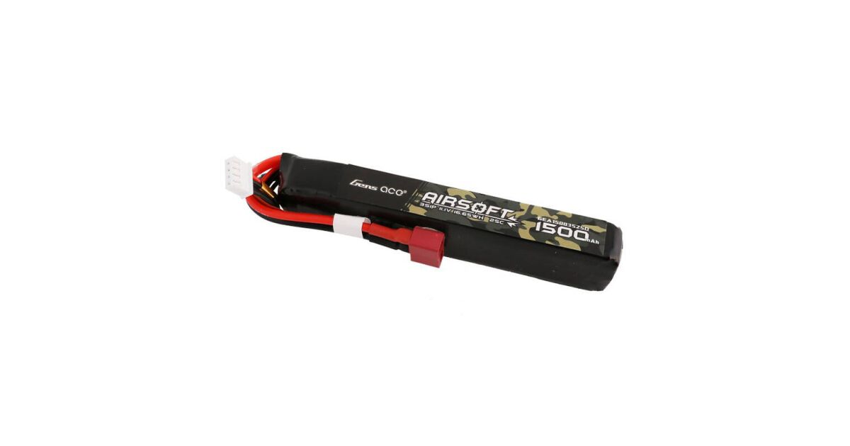 Acumulator LiPo Gens Ace Airsoft, tensiune 11.1 V, capacitate 1500 mA, rata descarcare 25C, format 3S1P, conector deans (GEA15003S25D) Descriere
