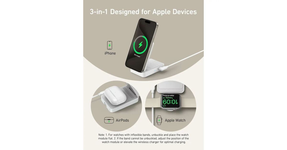 Încărcătorul wireless 3-în-1 Anker MagGo: Încarcă-ți iPhone-ul, Apple Watch-ul și AirPods-urile simultan! 📱⌚️🎧