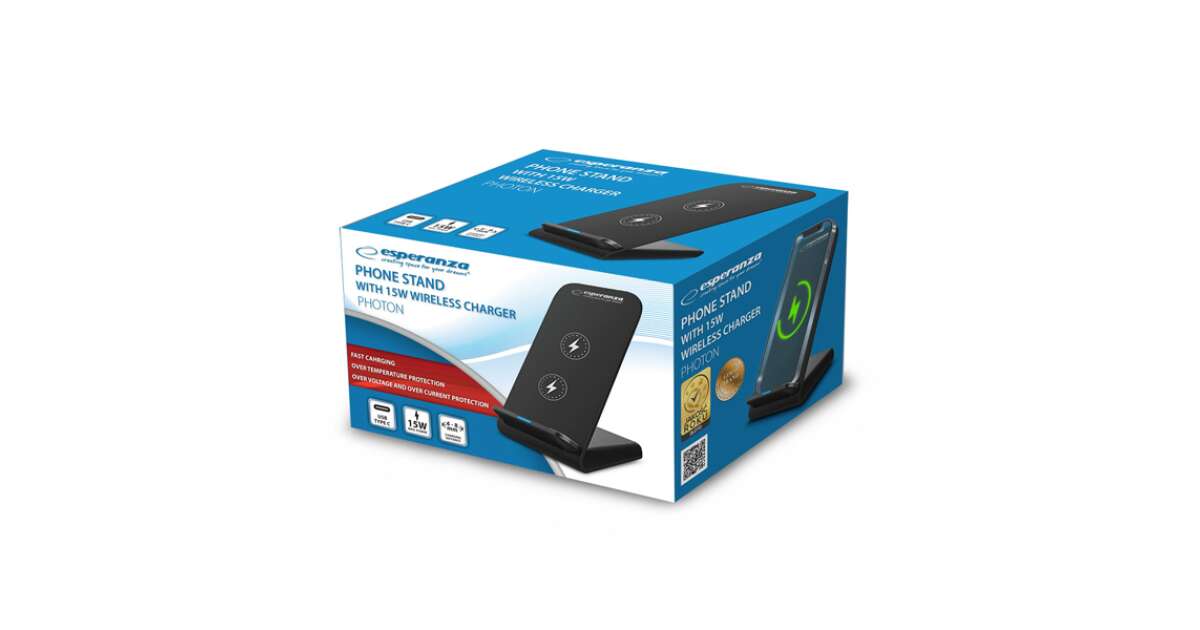 Suport smartphone cu incarcare wireless, Esperanza 95871, 15W, USB-C, indicator LED, negru
