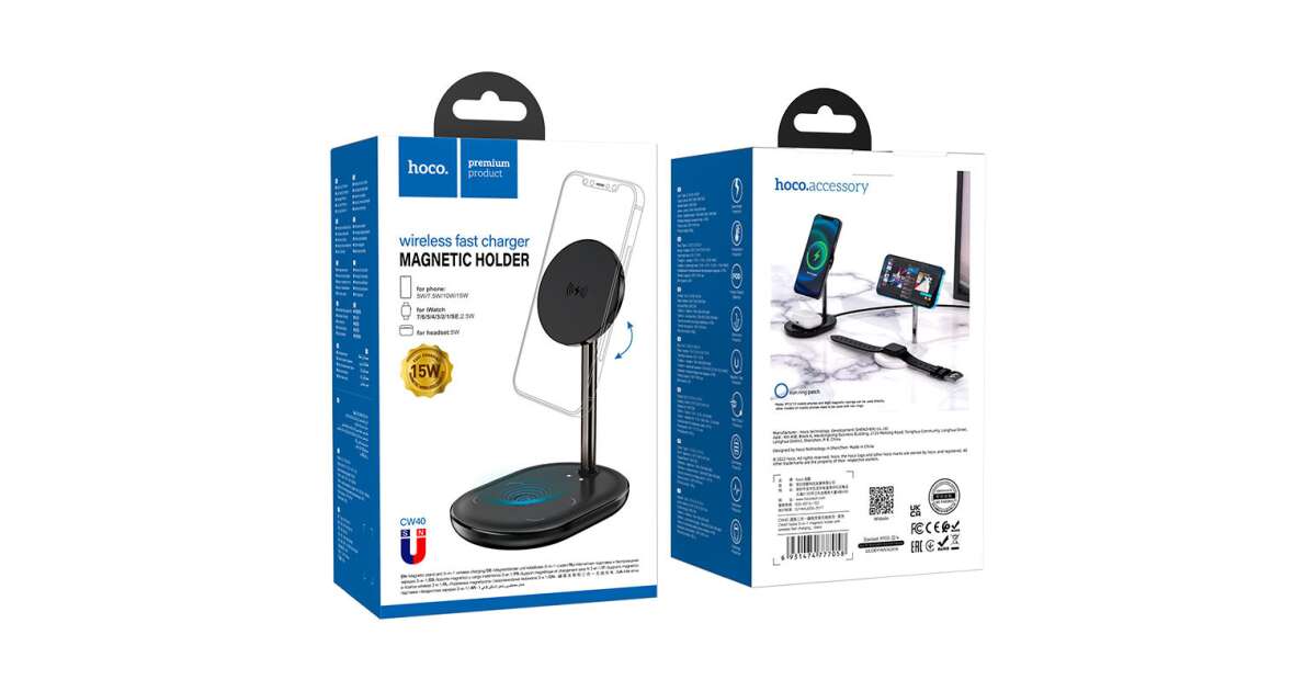 -SUPPORT DE ÎNCĂRCĂTOR RAPID FĂRĂ FĂRĂ 3 ÎN 1 HOCO CW40 NOBLE NEGRU Descriere