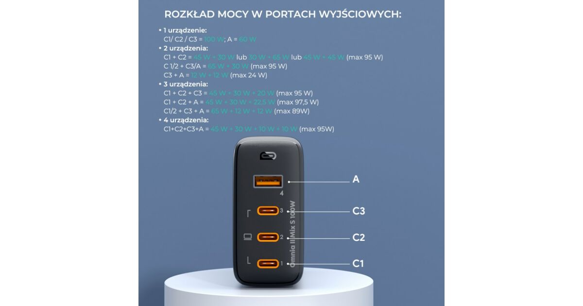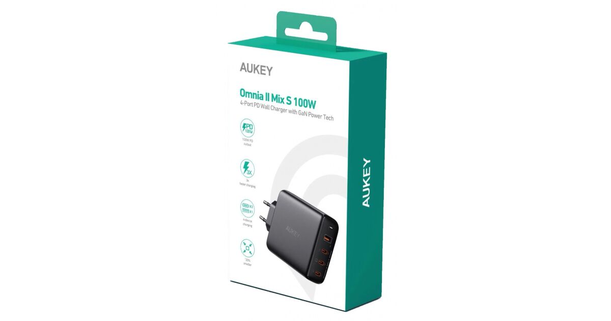 Încărcător de rețea AUKEY Omnia II Mix S 100W cu 4 porturi GaN: Încărcare rapidă și sigură pentru toate dispozitivele tale 🚀