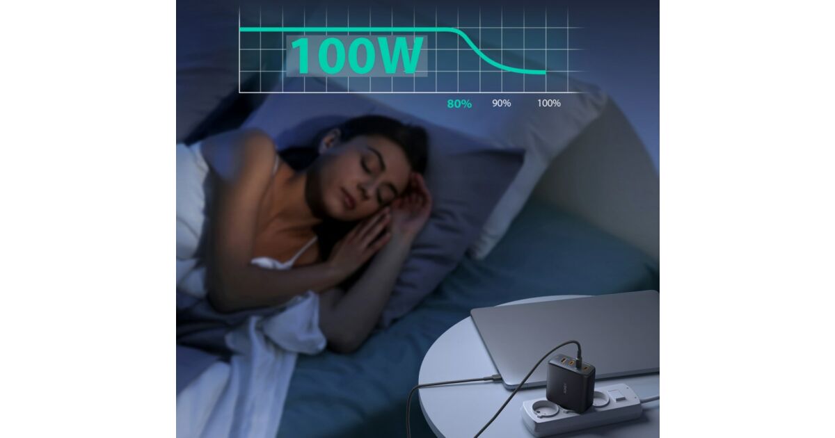 - Putere maximă de 100W: Poți încărca complet un MacBook Pro de 16 inch în doar 1,8 ore.