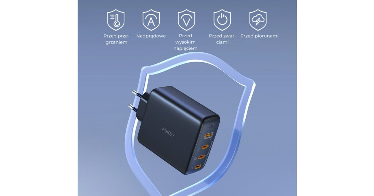 -Încărcător Aukey GaN, 3x USB-C, USB-A, QC, PD 100W Descriere