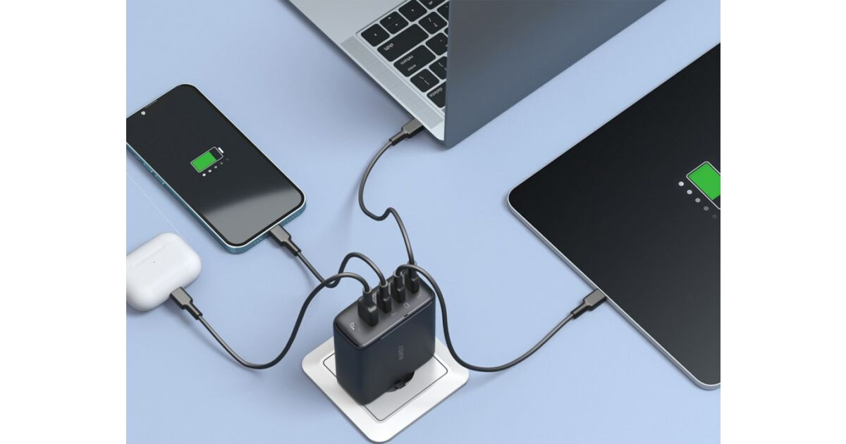 - 4 porturi: 3 porturi USB-C + 1 port USB-A, astfel încât să poți încărca mai multe dispozitive simultan.