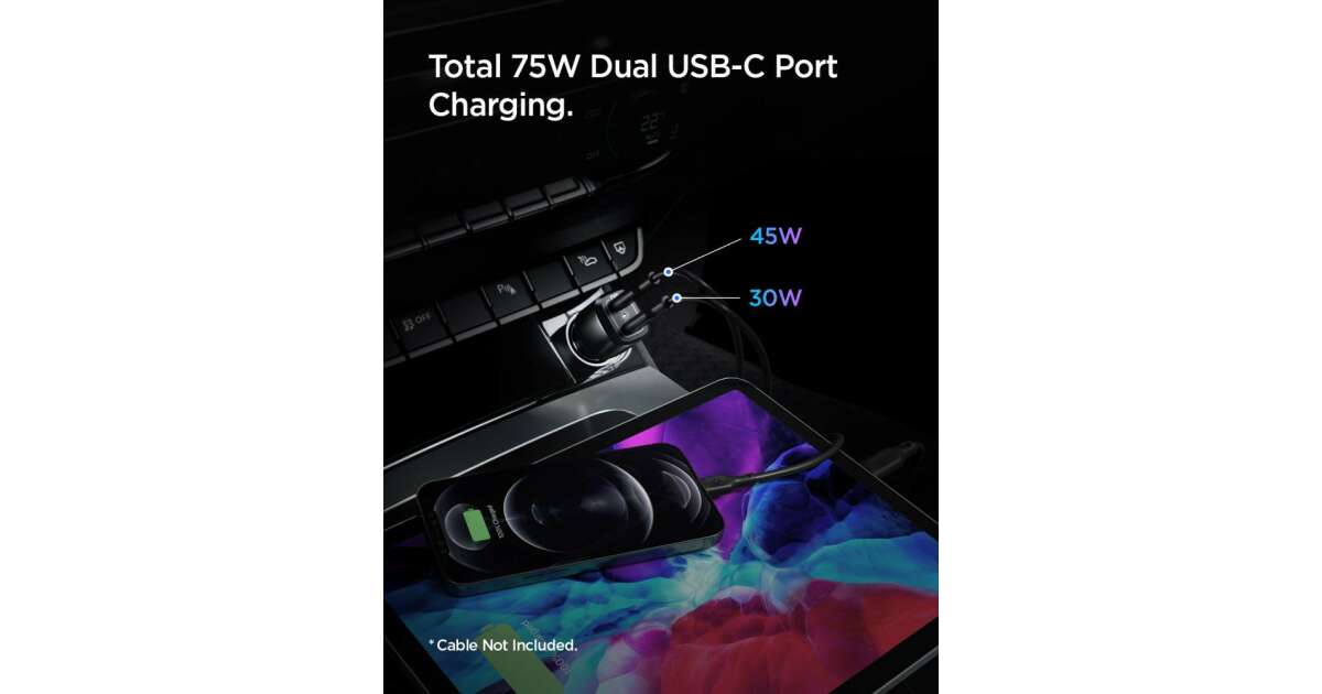 Spigen ArcStation 75W Încărcător Auto Dual USB-C: Viteză de Încărcare Fulgerătoare ⚡
