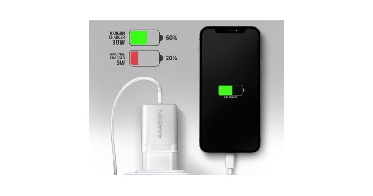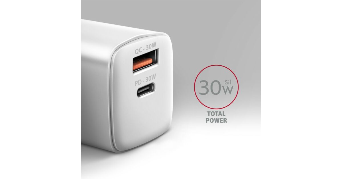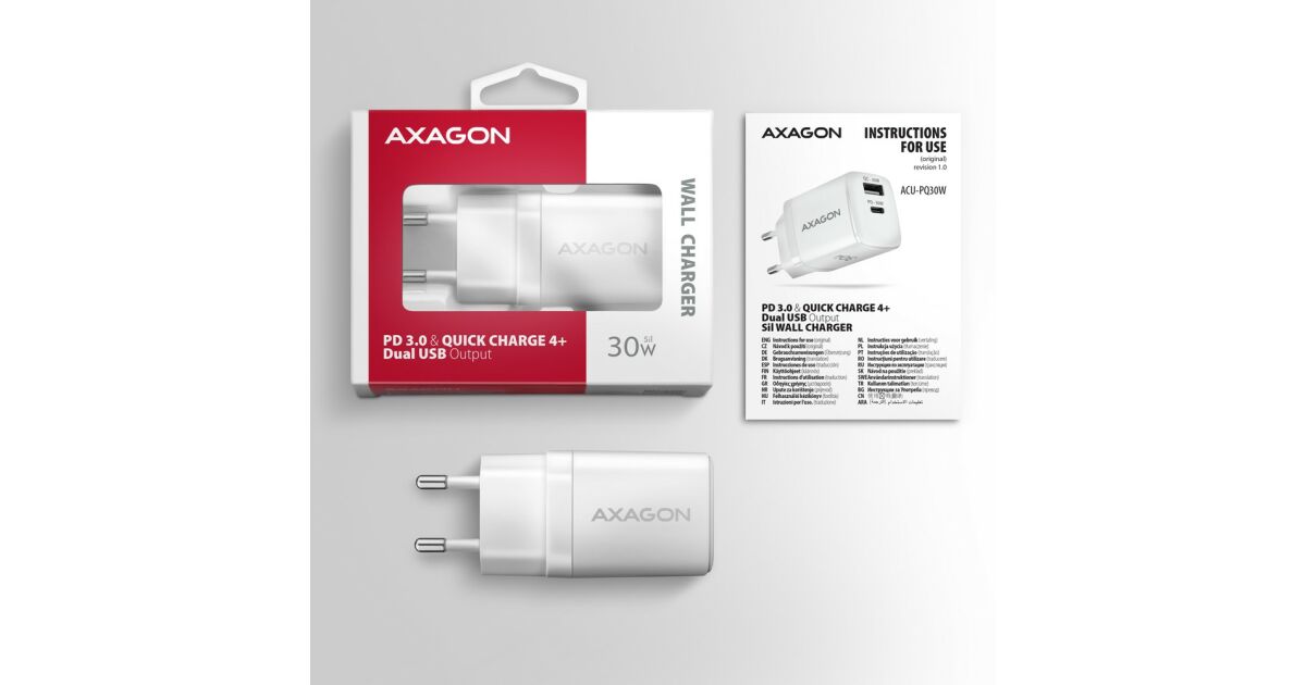 Încărcător Axagon ACU-PQ30W Încărcător de putere PD & QC 30W, QC3.0,4.0/AFC/FCP/PPS/Apple alb