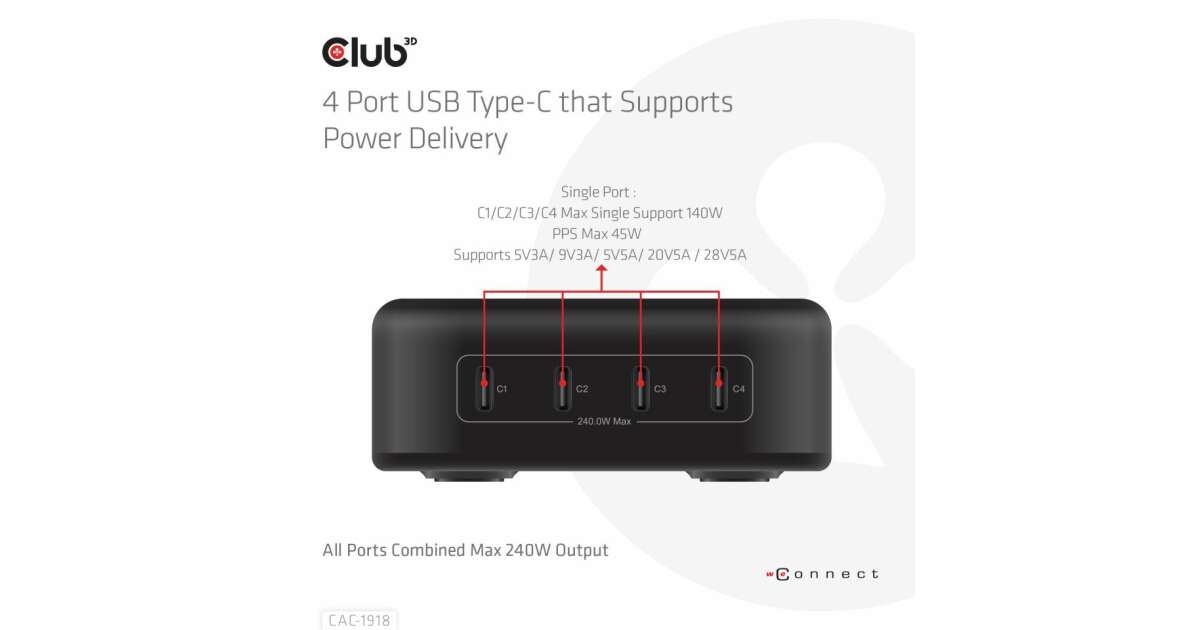 Încărcător Club 3D Club3D Încărcător 4xUSB tip C PD 240W, GaN cu amănuntul