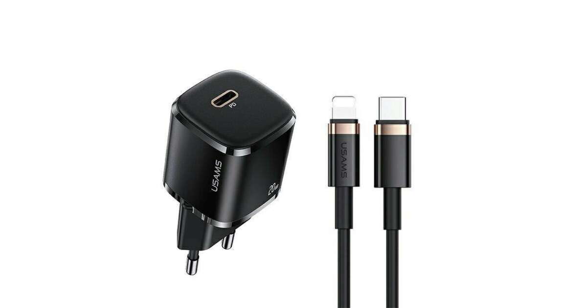 Încărcător de perete USAMS 1xUSB-C T36 mini 20W + cablu USB-C-Lightning negru PD3.0 Încărcare rapidă XFKXLOGTL01 (US-CC124+US-SJ484) Descriere