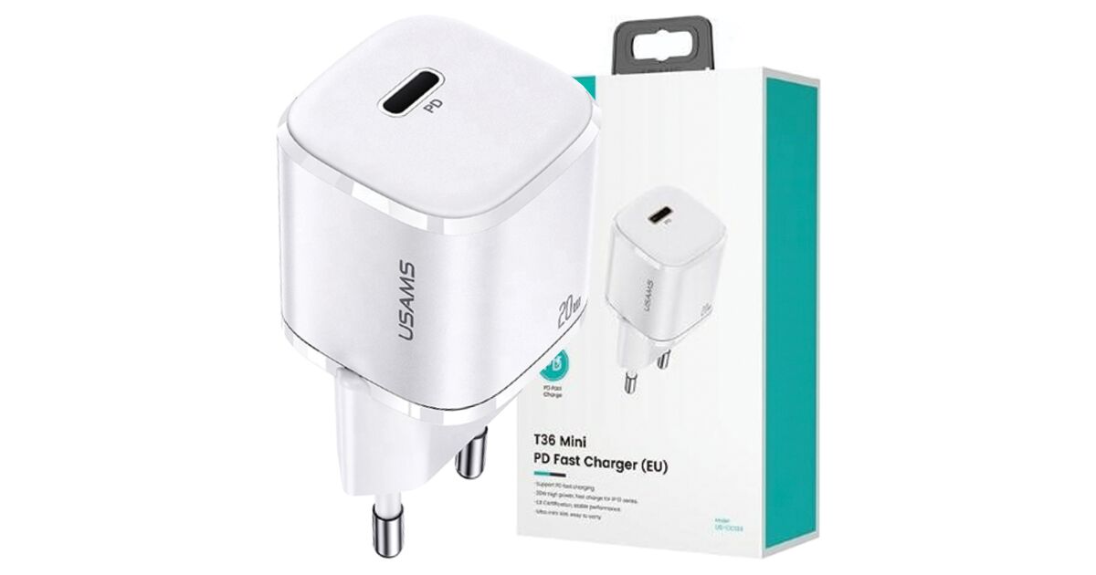 Încărcător de perete USAMS 1xUSB-C T36 mini 20W PD3.0 Încărcare rapidă alb CC124TC02 (US-CC124) Descriere