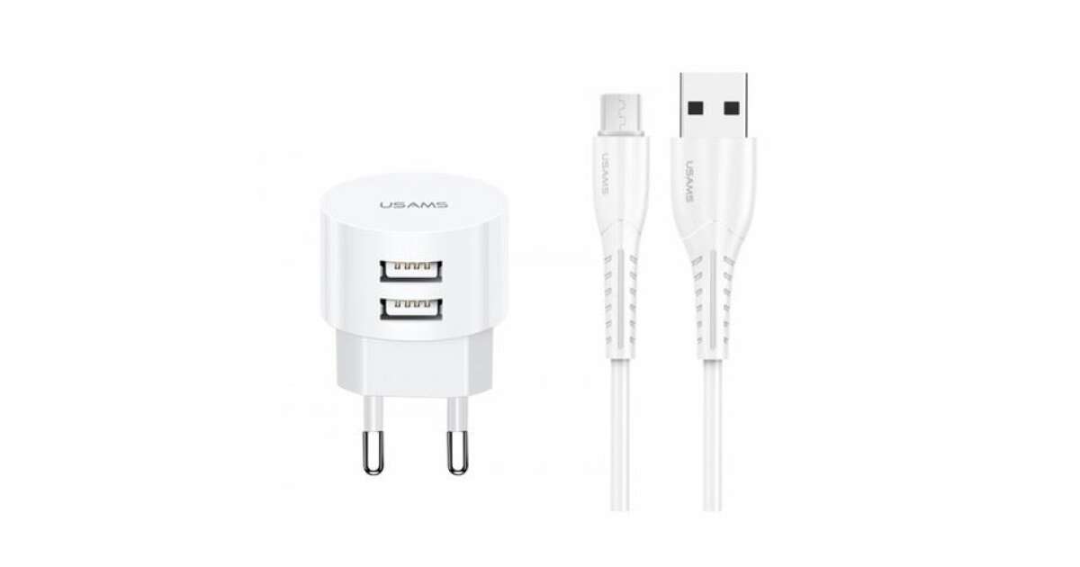 Incarcator de perete, Usams, Cablu Micro USB/2X USB, 2.1 A, Alb (XTXLOGT18MC05) Descriere