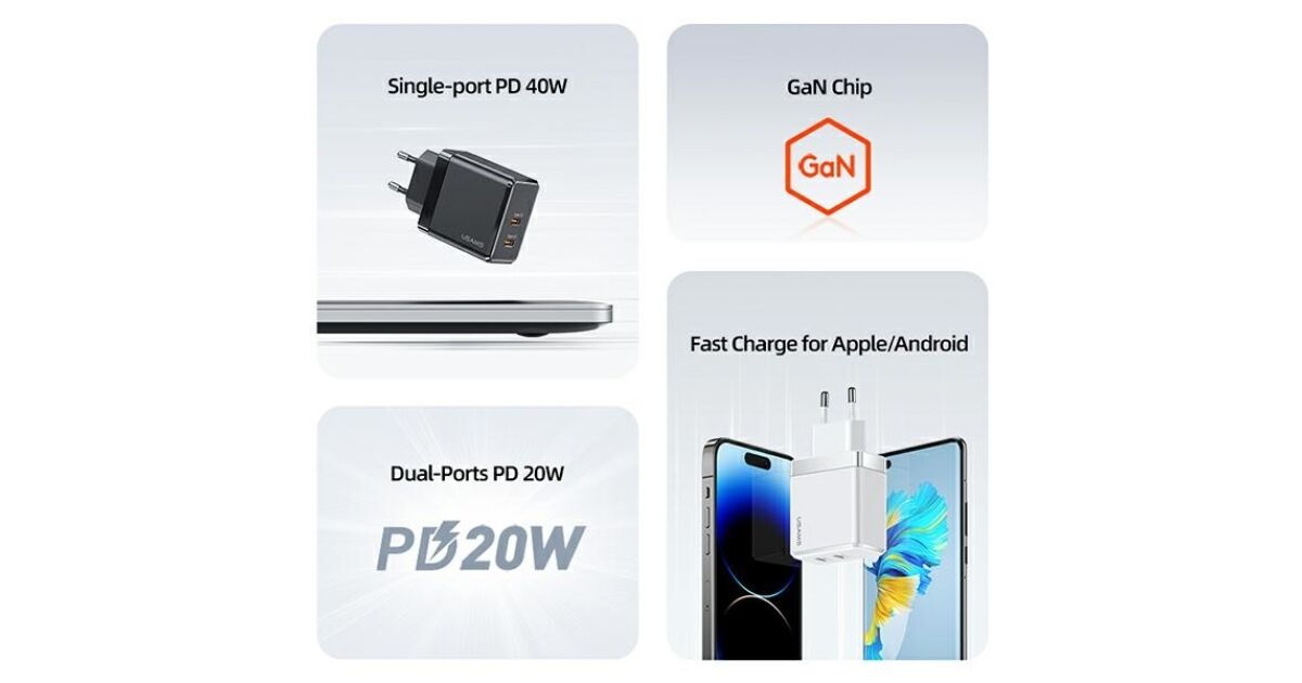 - Tehnologia GaN asigură o încărcare mai eficientă și mai sigură.