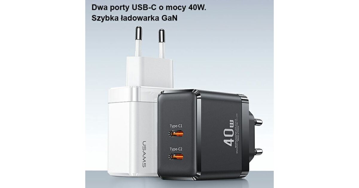 Încărcător de rețea USAMS 40W GaN USB-C Dual Fast Charger: Încarcă două dispozitive simultan, super rapid ⚡