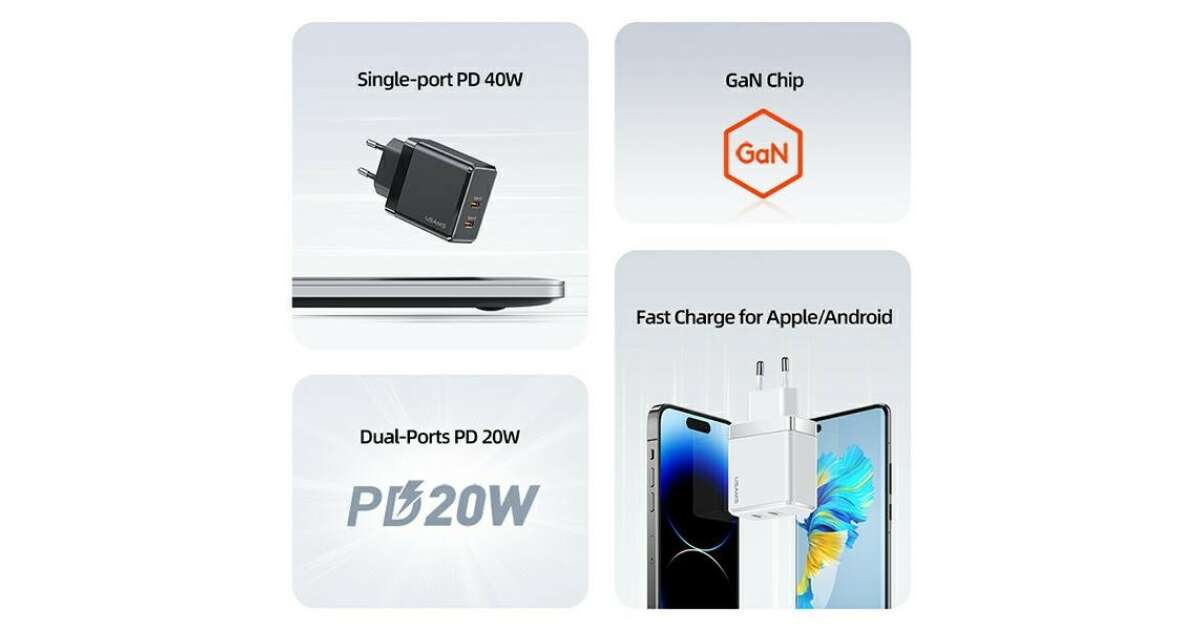 - Tehnologie GaN: Încărcare mai eficientă și mai rapidă, cu mai puțină generare de căldură.