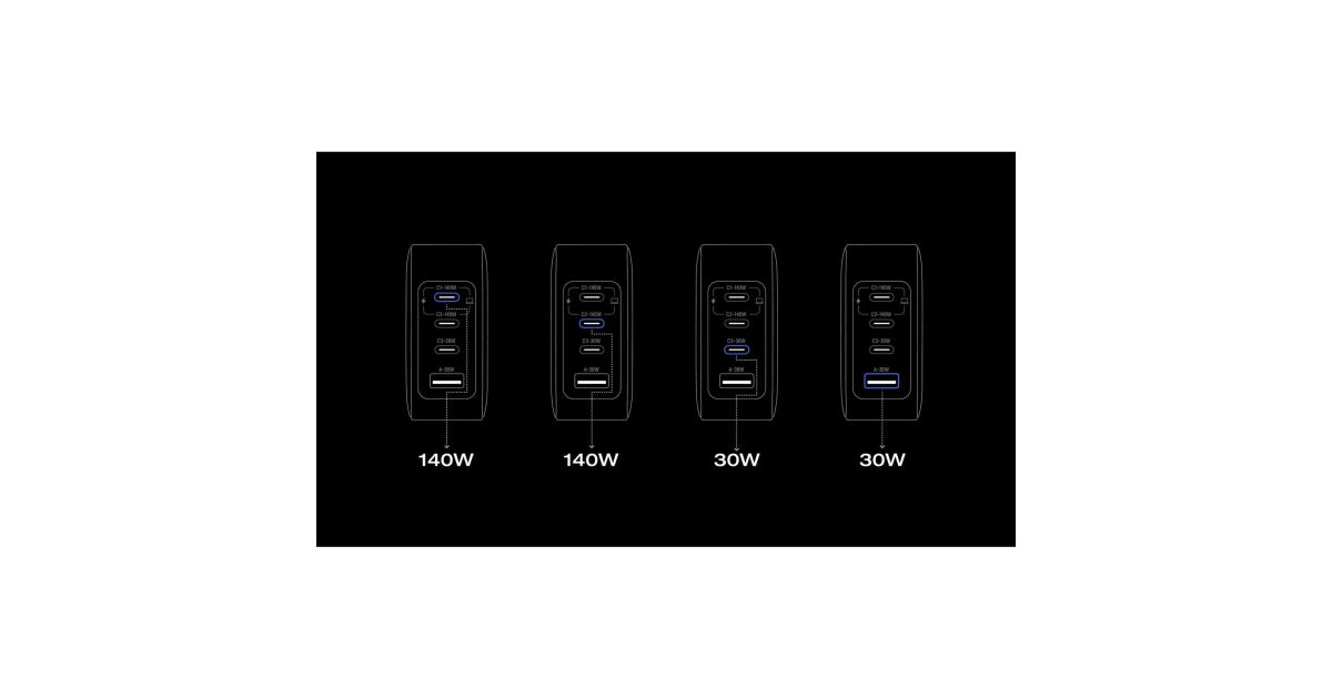 - Încărcare 4 în 1: Încarcă până la 4 dispozitive simultan (3x USB-C, 1x USB-A).