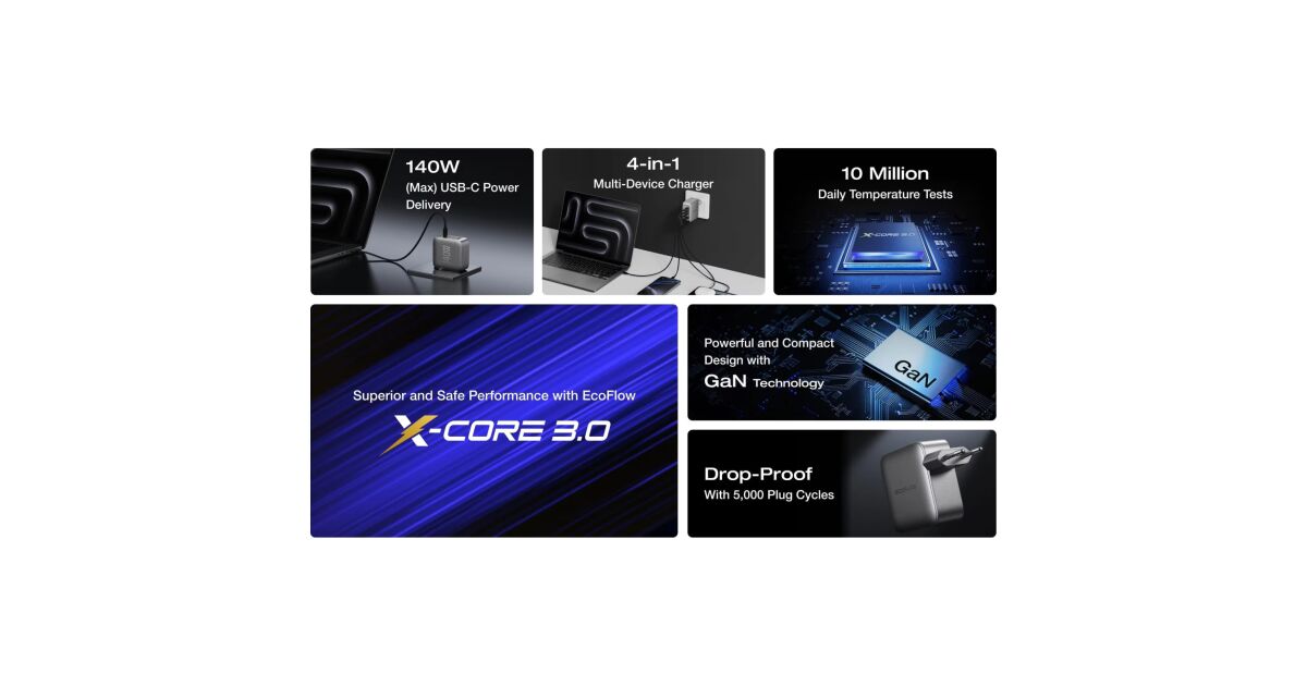 Încărcător de perete EcoFlow RAPID Pro 140W: Încarcă 4 dispozitive simultan, super rapid! ⚡️