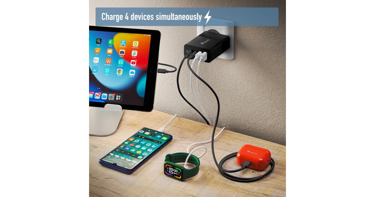 Încărcător de perete NGS cu 4 porturi - Rapid, sigur și eficient!