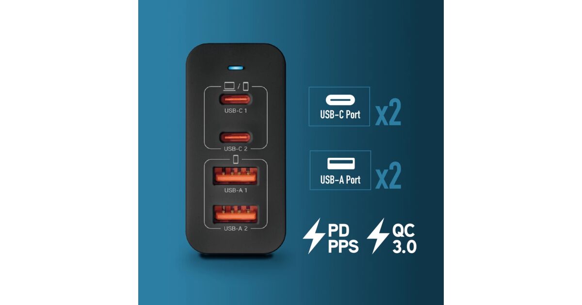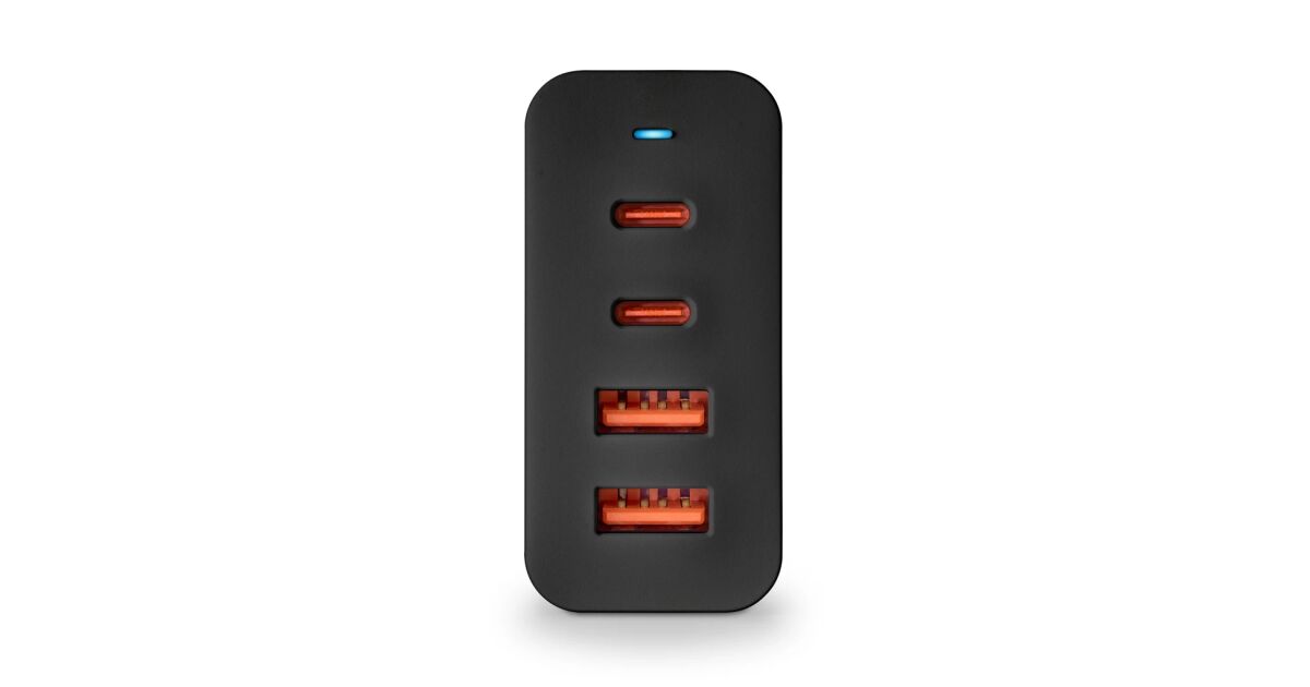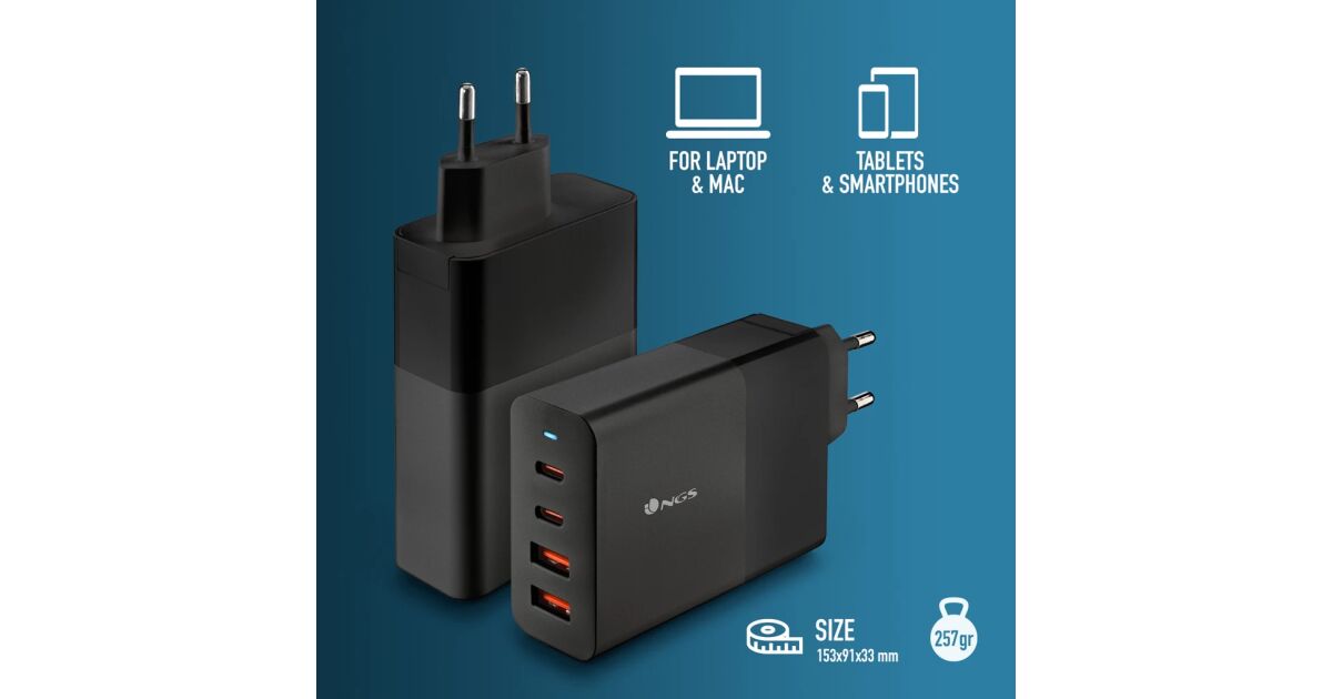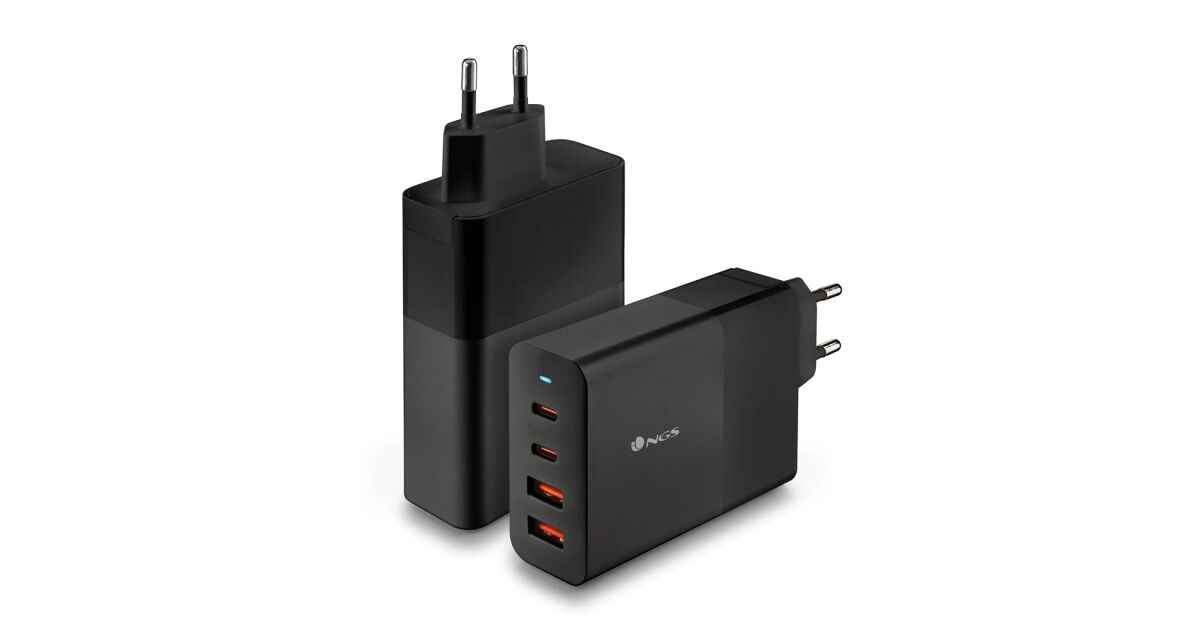 Încărcător de rețea NGS negru 100W PD3.0 - cu 2 ieșiri USB-C + 2 USB-A Descriere