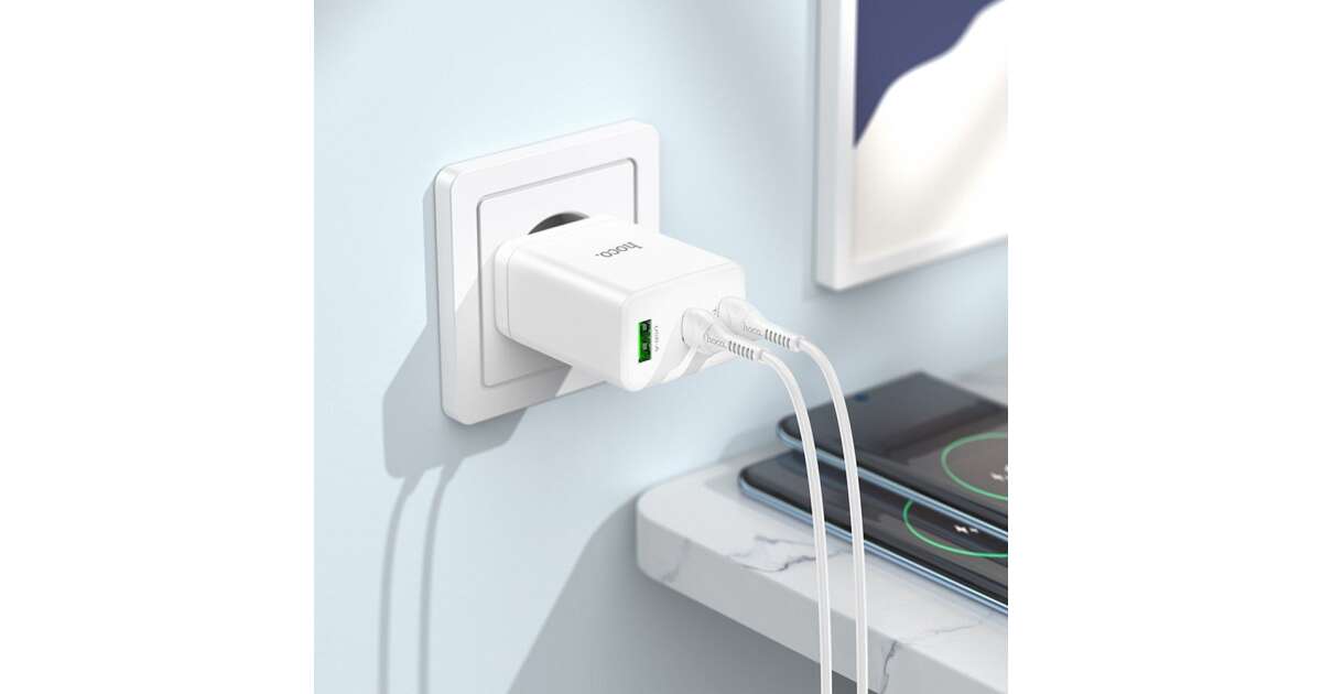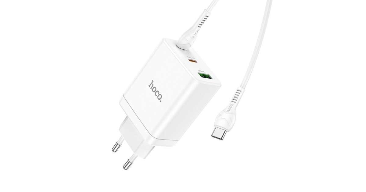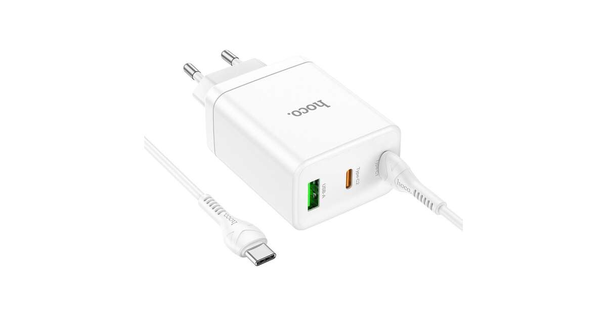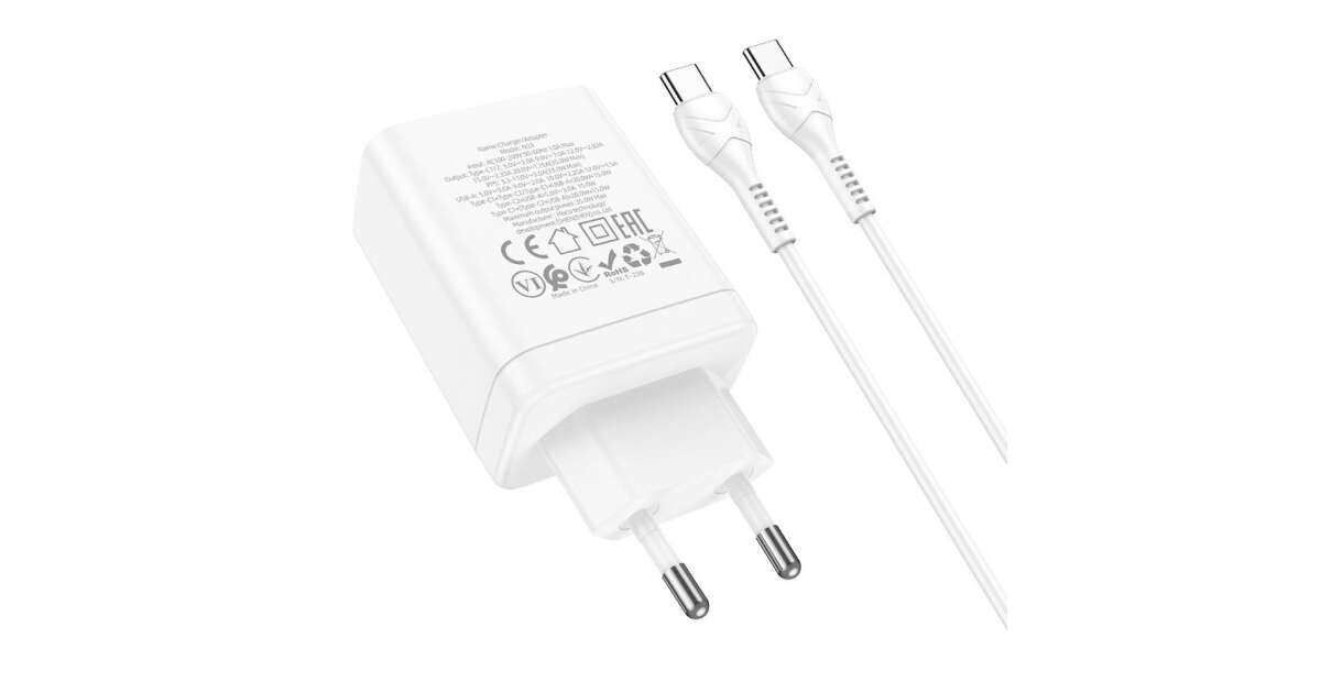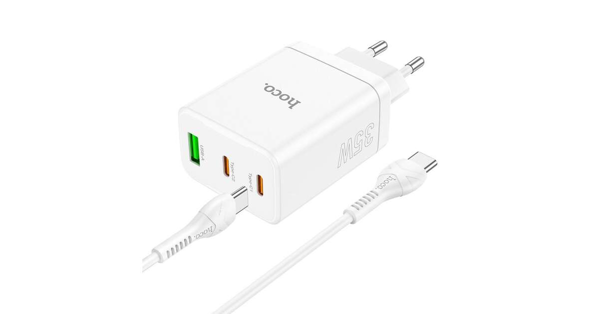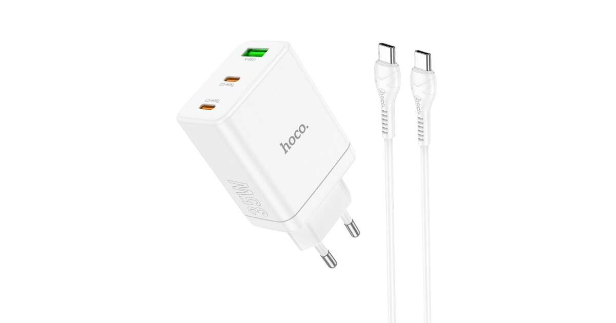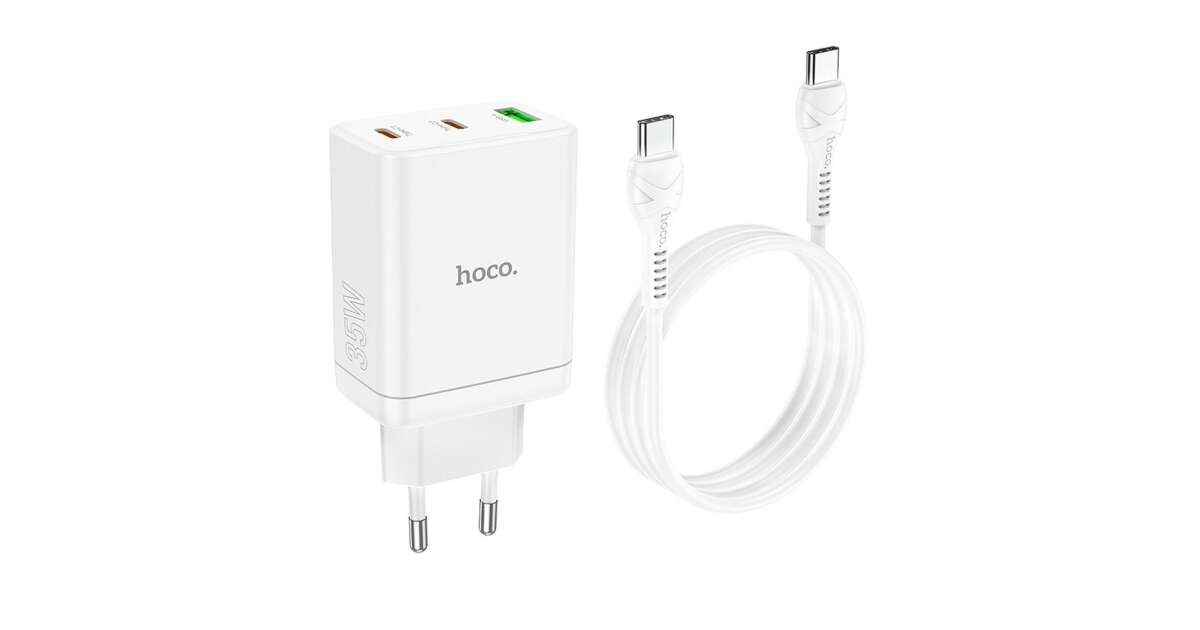 Incarcator HOCO 2 x Tip C + USB A + cablu Tip C - Tip C QC PD 35W N33 alb Descriere