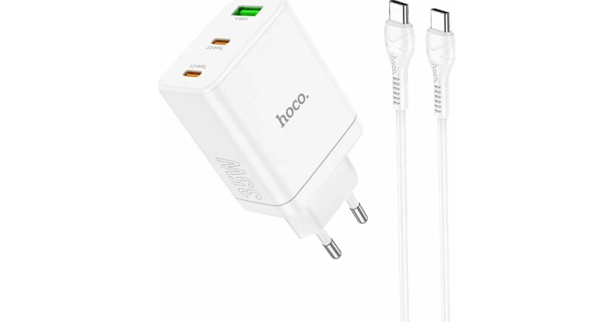 Incarcator HOCO 2 x Tip C + USB A + cablu Tip C - Tip C QC PD 35W N33 alb cumpărați de la: